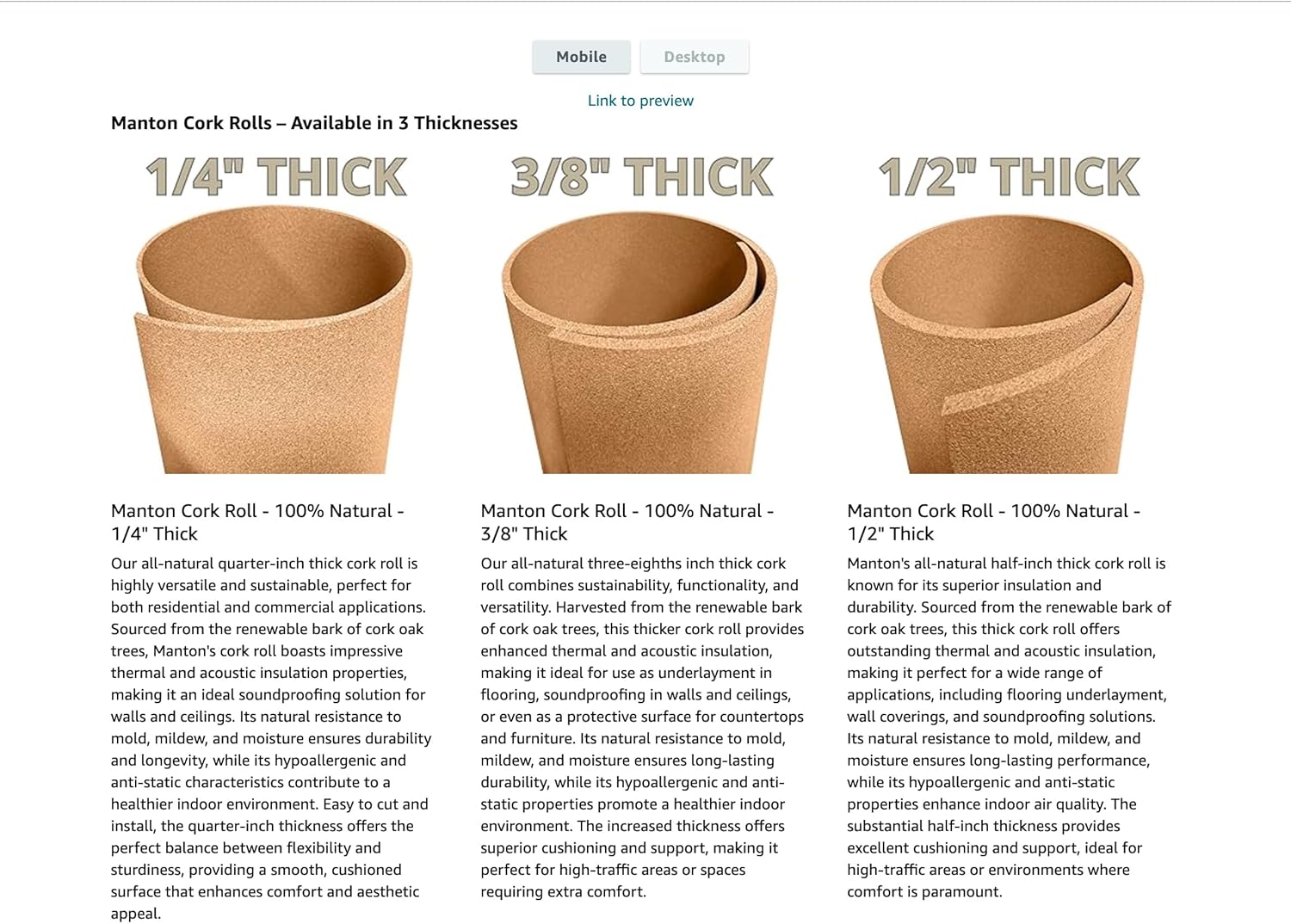 Manton Cork Premium Cork Roll - 3’ x 12’ x 1/4”, 100% Natural Facing Grade Material, Custom Cut Cork for Home, School, and Office Walls & Bulletin Boards