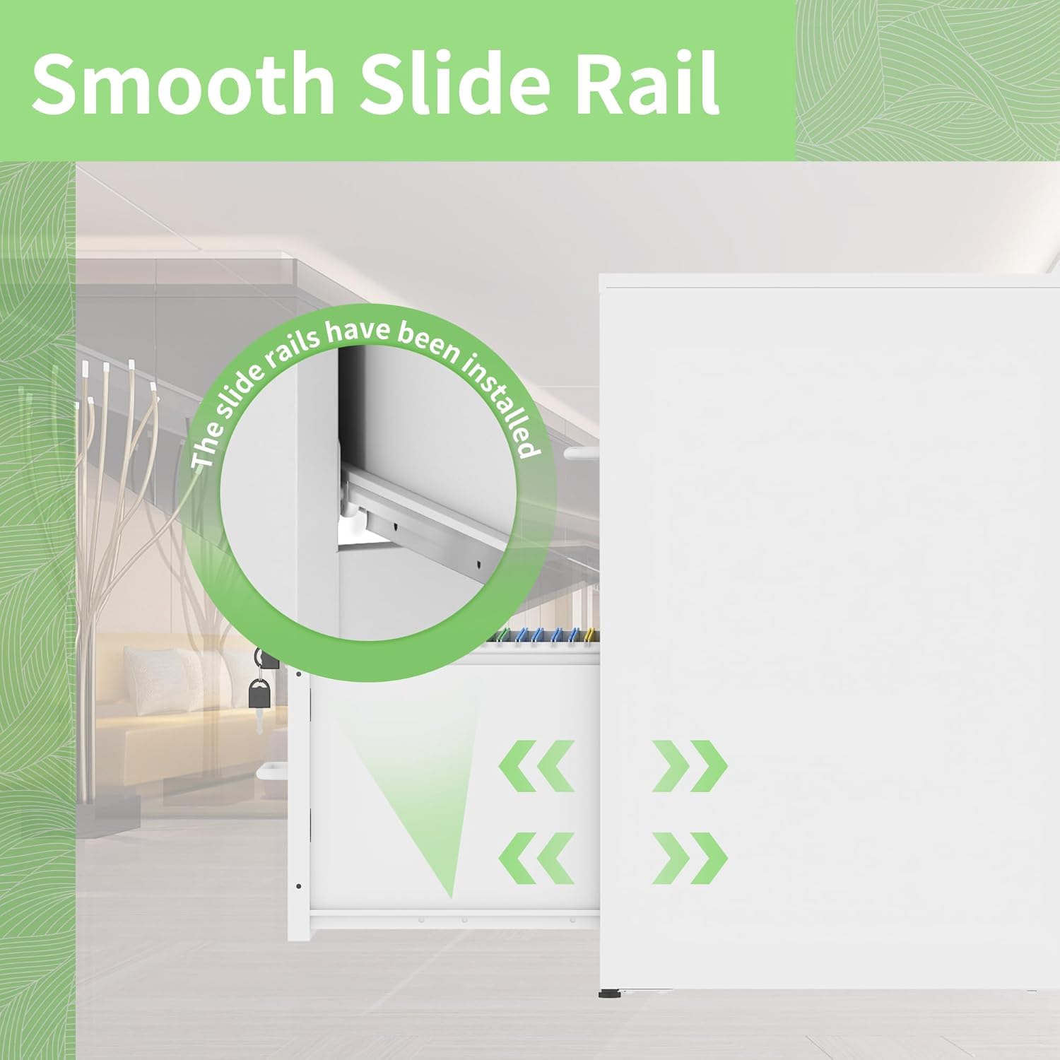 - 【Solid & Durable】Crafted from whole-in-one reinforced high-strength cold-rolled steel, this locking lateral file cabinet ensures remarkable sturdiness and longevity. Each drawer can bear a maximum load of 22 lbs, showcasing its robust construction. The combination of a strong structure and a powder coating surface process makes this wide cabinet highly resistant to rust, scratches, and ensures easy cleaning, maintaining its pristine appearance over time.