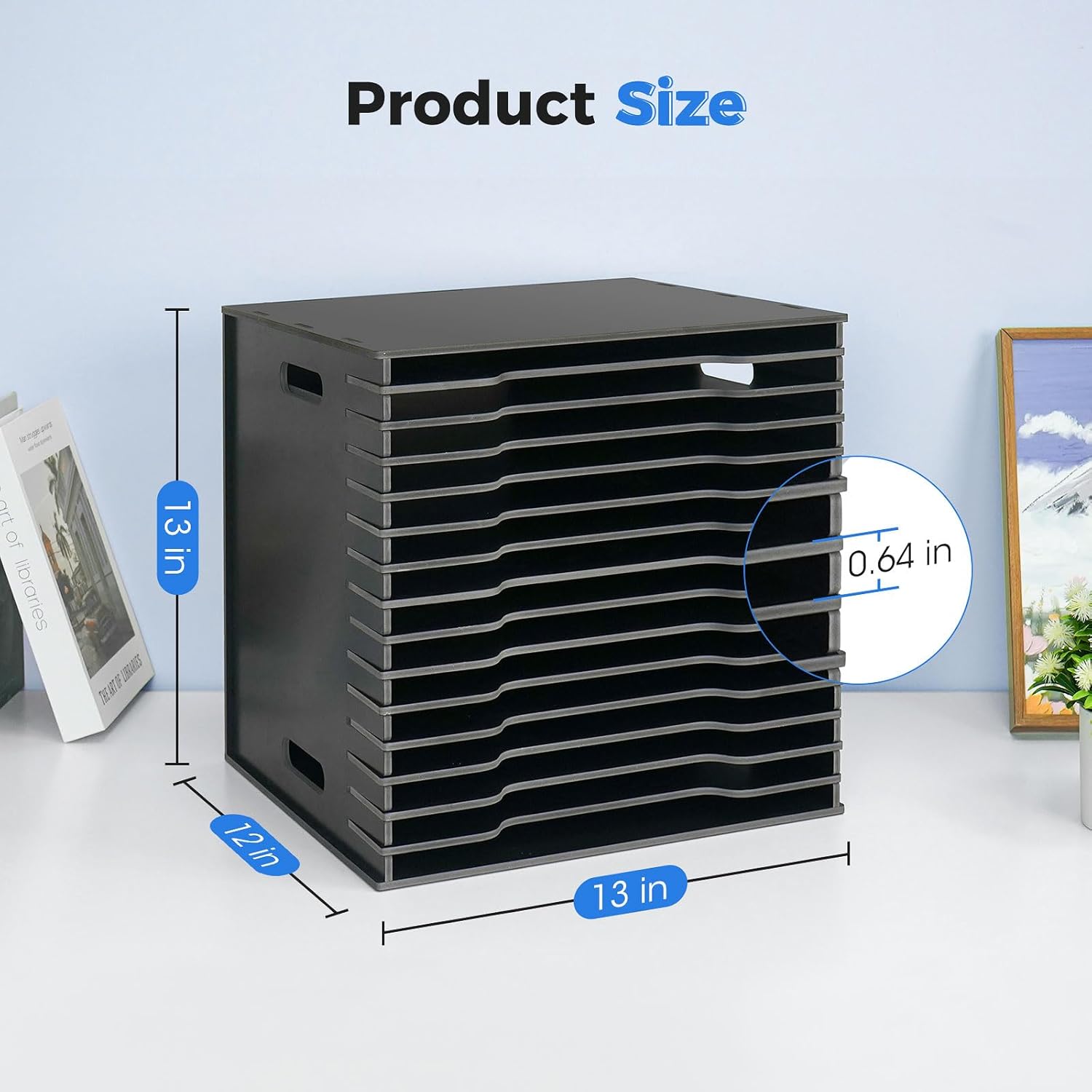 SANFURNEY Scrapbook Paper Organizer for Sizes 12" x 12", 15 Slots File Sorter Storage, Document Holder, Desktop Scrapbook Paper Organizer Rack - Black