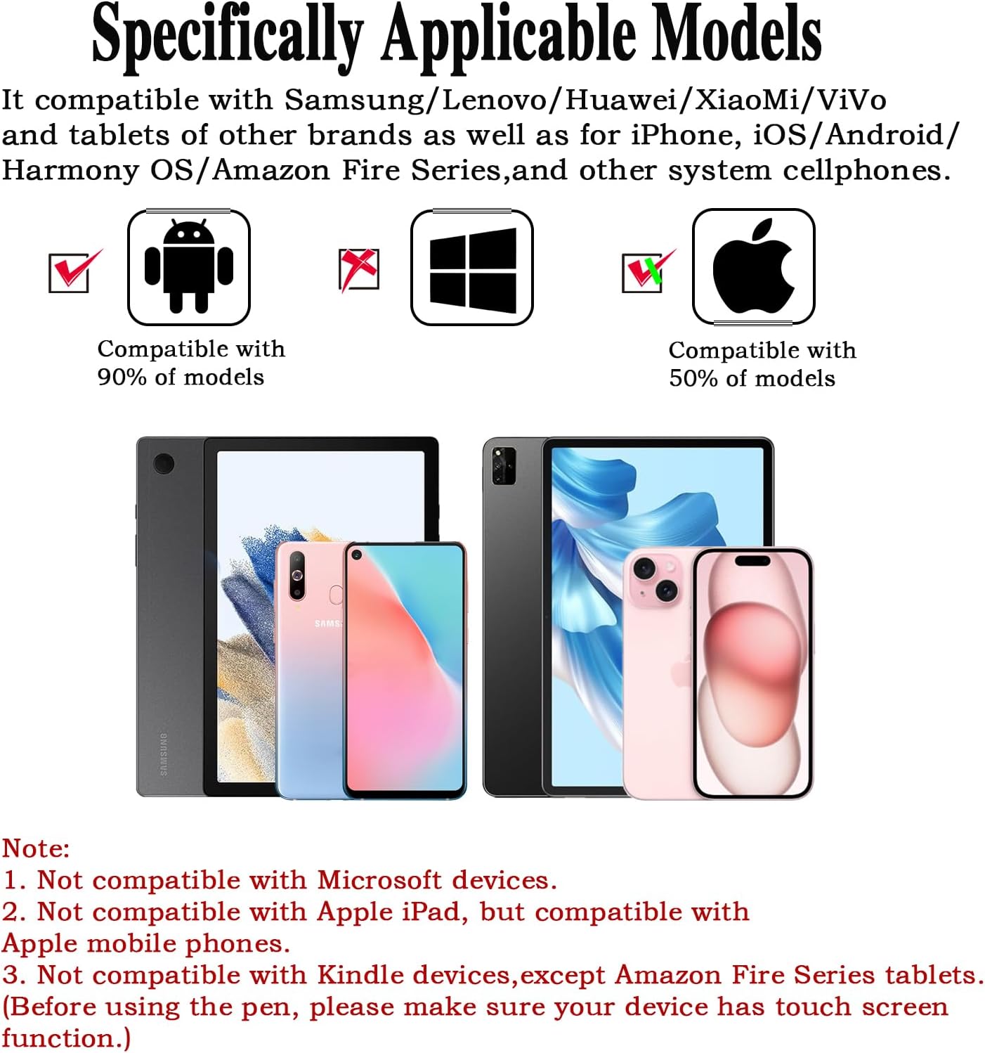 - Compatible Devices : It is compatible for iOS/Android touchscreens, suitable for Samsung/Lenovo/Huawei/XiaoMi/ViVo and tablets of other brands as well as for iOS/Android/Harmony OS/Amazon Fire Series,and other system cellphones. (Note: This stylist pens not compatible for iPad & Microsoft tablets and windows systems) It is compatible for iOS/Android touchscreens, suitable for Samsung/Lenovo/Huawei/XiaoMi/ViVo and tablets of other brands as well as for iOS/Android/Harmony OS/Amazon Fire Series,and other system cellphon⊠See more