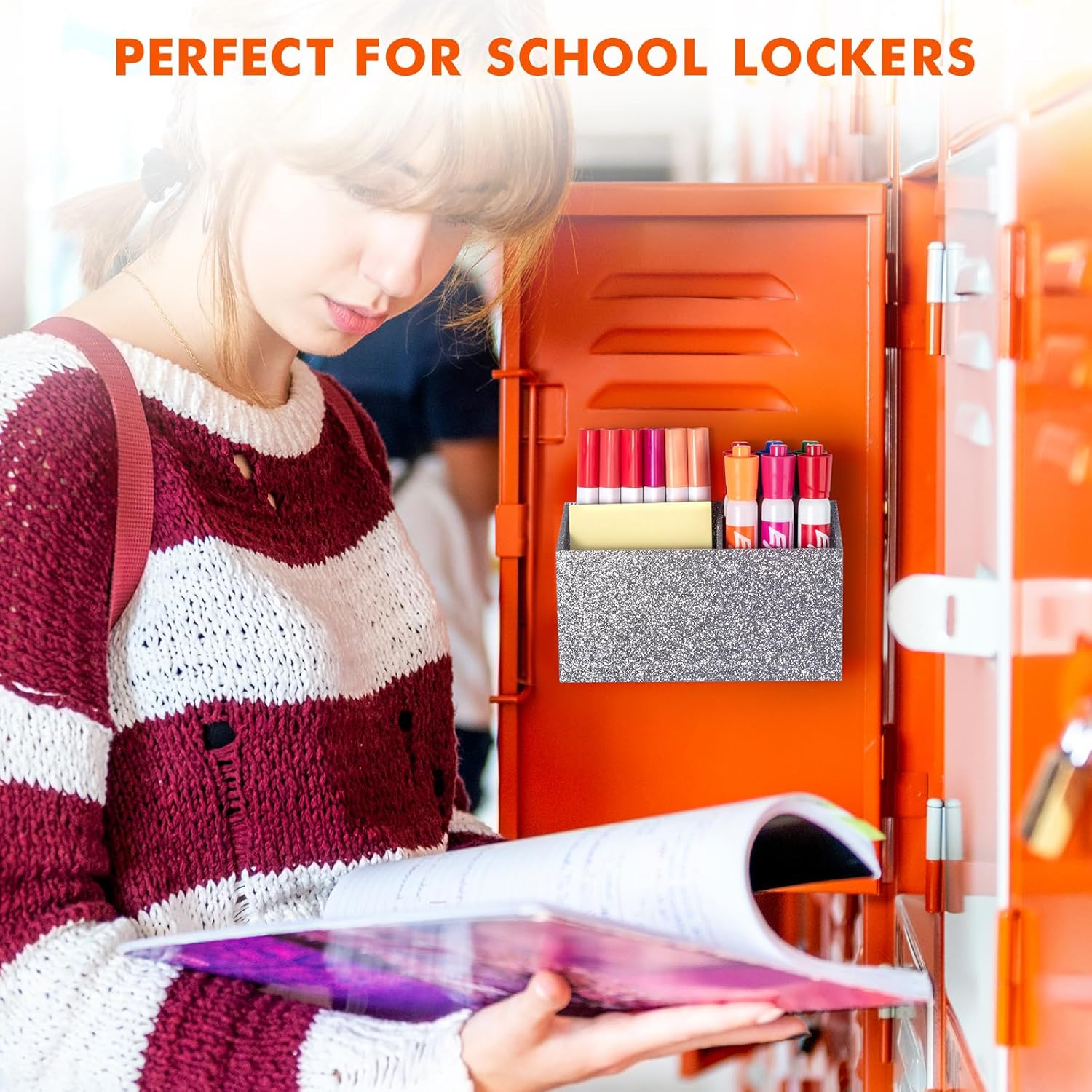 BEYGORM Magnetic Dry Erase Marker Holder for Whiteboard,Non-slip Acrylic Magnet Pen Holder for Fridge Refrigerator,Locker Organizer for Work,Locker Accessories,Pencil Cup for Desk(Silver)