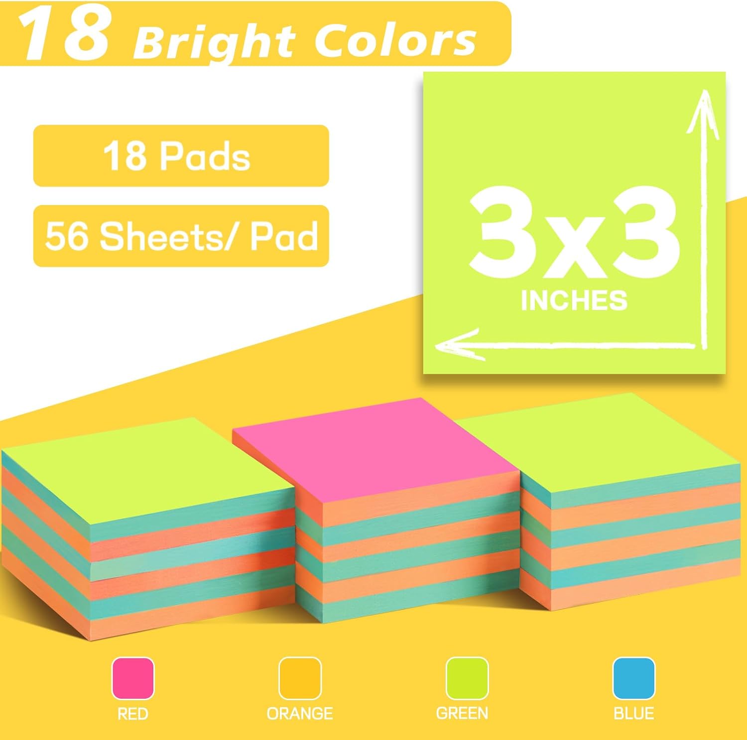 - Original Size: 3 in x 3 in, 18 Pads/Pack, 56 Sheets/Pad, Bulk Set.