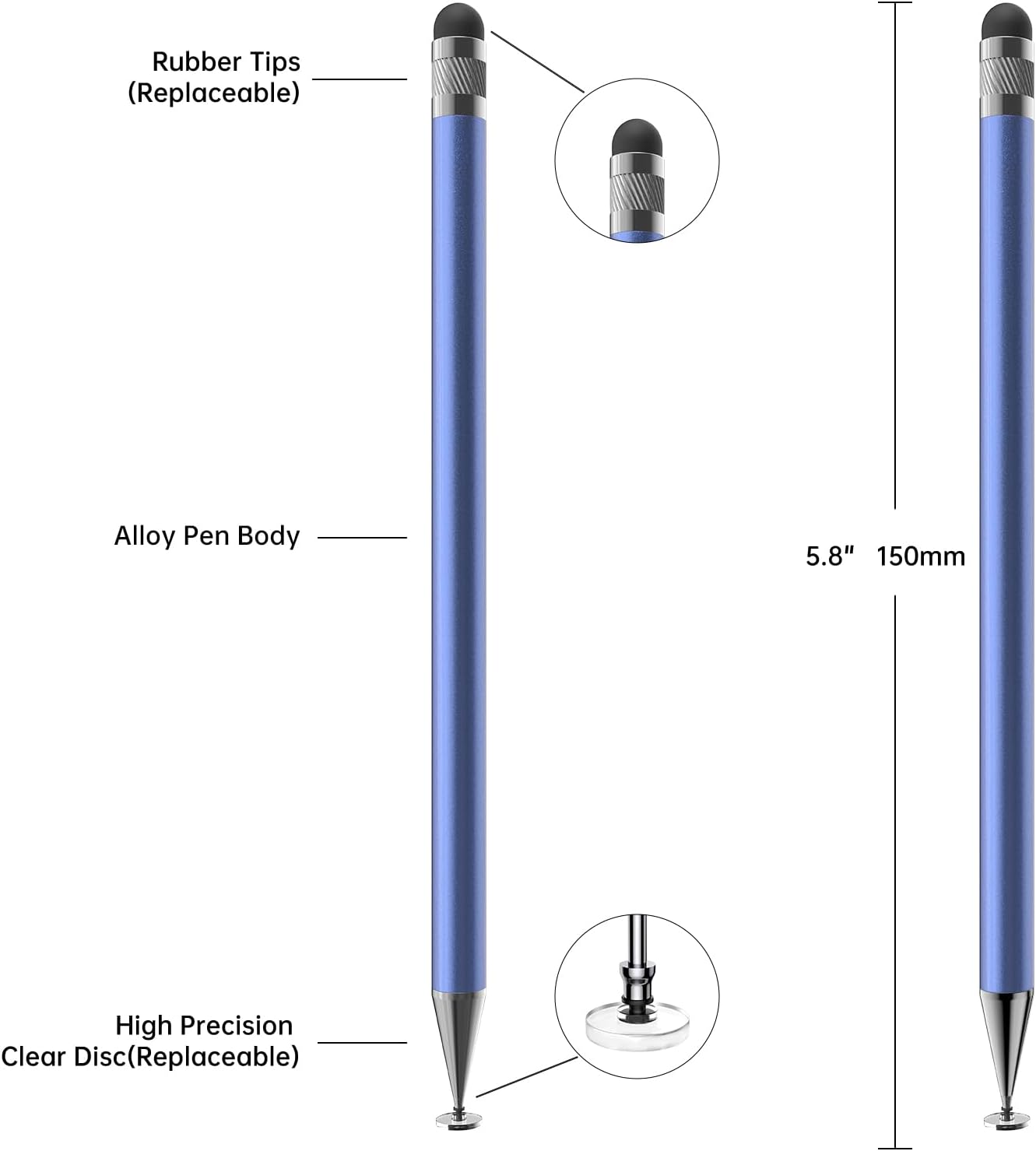 - 【High Accuracy and High Sensitivity】The stylus adopts a flexible transparent disc tip that can flexibly fit on the screen without leaving disconnected lines on your tablet or phone, providing better flexibility and accuracy, Allowing you to see exactly where the mark is and giving an accurate point, while the rubber tip and disc tip can give you two different touch experiences.