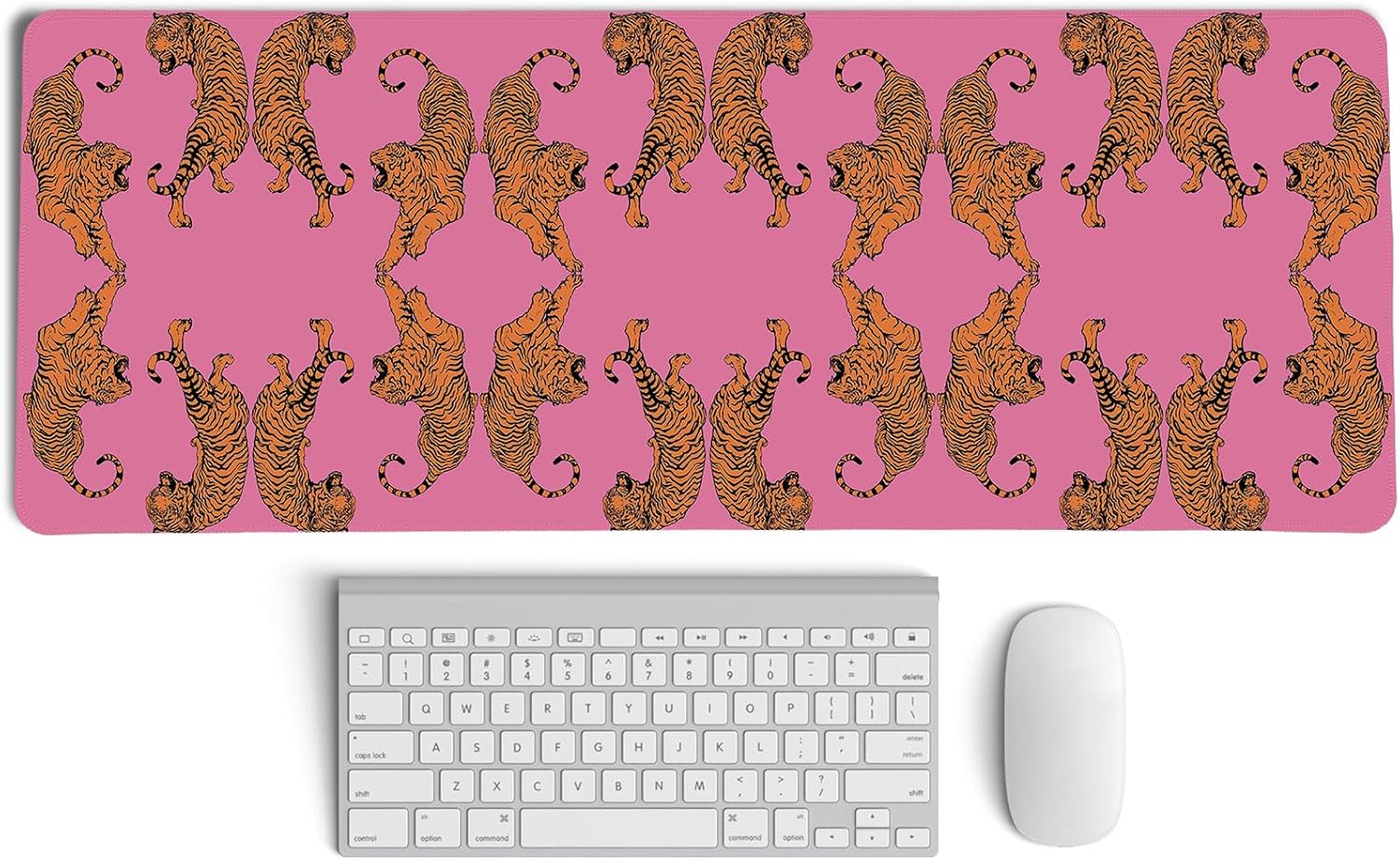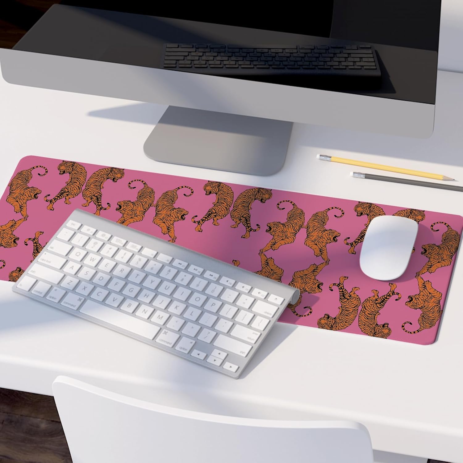 Pink Tiger Decor Desk Mat, Large Girly Cheetah Mouse Pad, Leopard Print Desk Mat for Girls Dorm Home Office Decor, Tiger Mouse Pad Desktop Decor,31.5x11.8