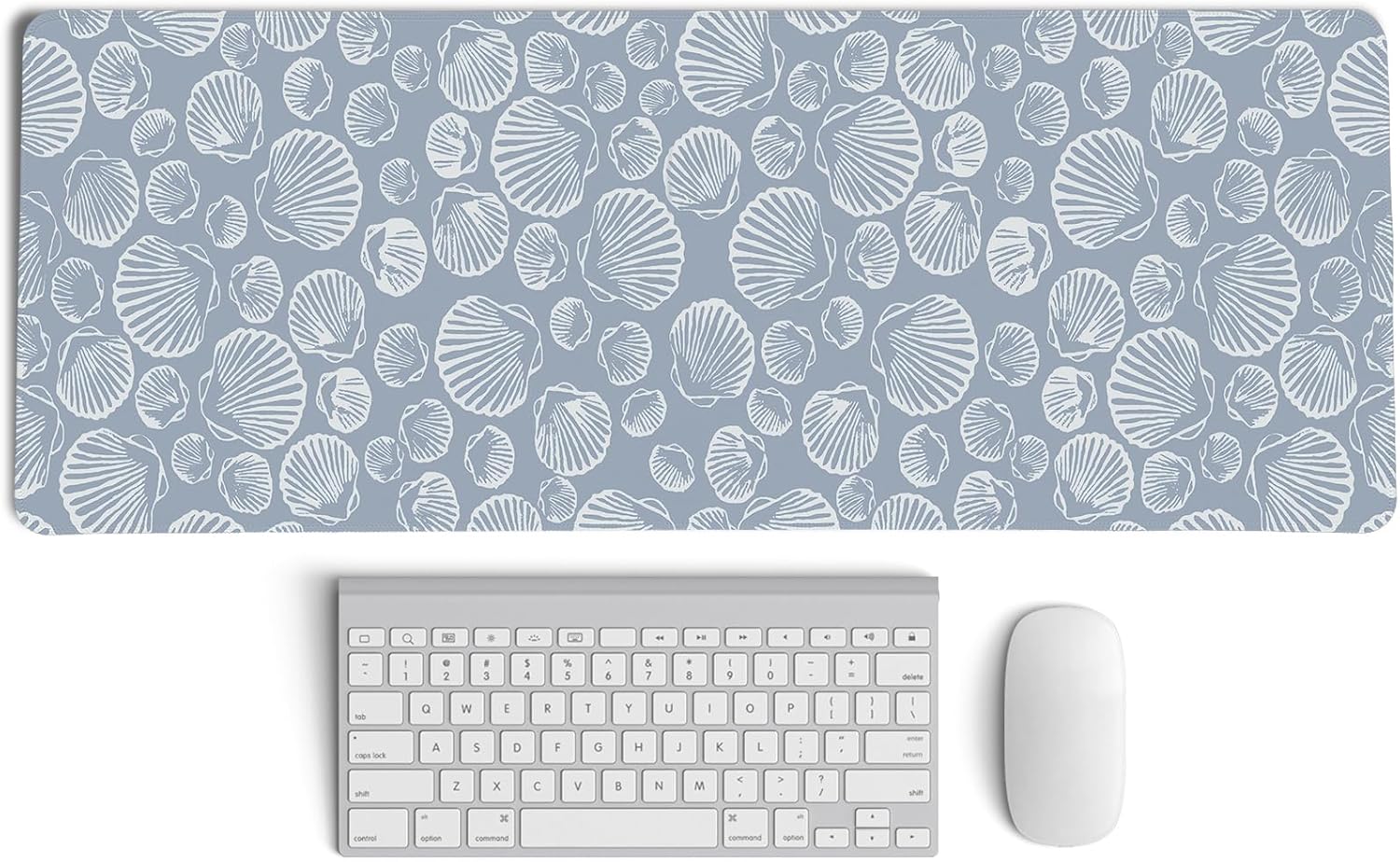 Seashell Mouse Pad,Coastal Beach Mouse Pad,XL Large Ocean Beach Seashell Desk Mat,Girly Summer Beachy Gaming Computer Pads,Girly Laptop Desk Mat,Summer Beachy Desktop Decor Art,31.5x11.8 Inch