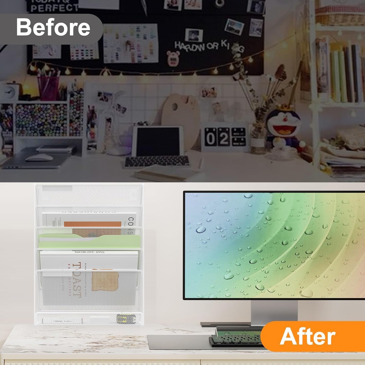 Kuntine.B Wall File Organizer Office Hanging Magazine Holder Wall File Organizer for Office Home (White, 6 Tier)