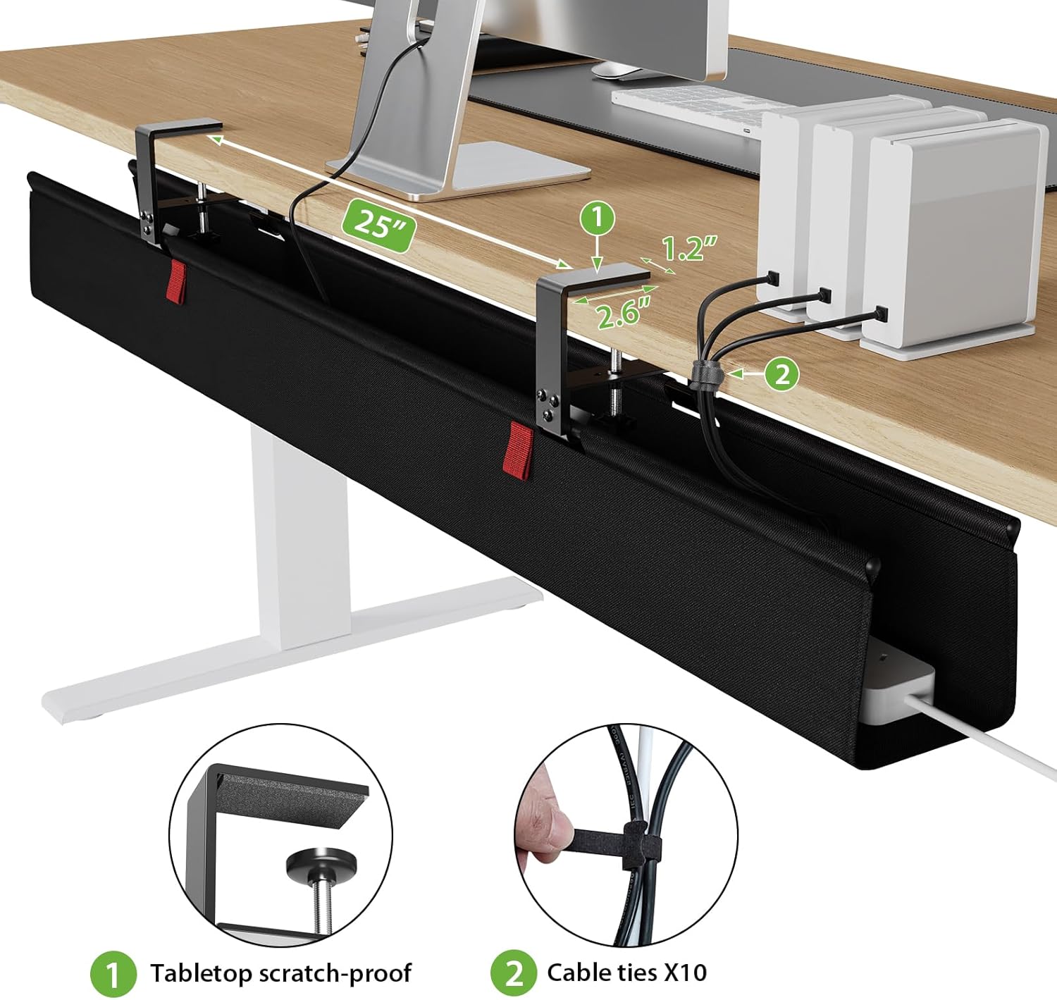 KEEGH Extra Large 48" Under Desk Cable Management Tray - Under Desk Cord Management - Clamp/Screw Mount - Support Upto 70lbs - Fabric Wire Management - Cable Raceways Tray Cord Hiders for Office/Home