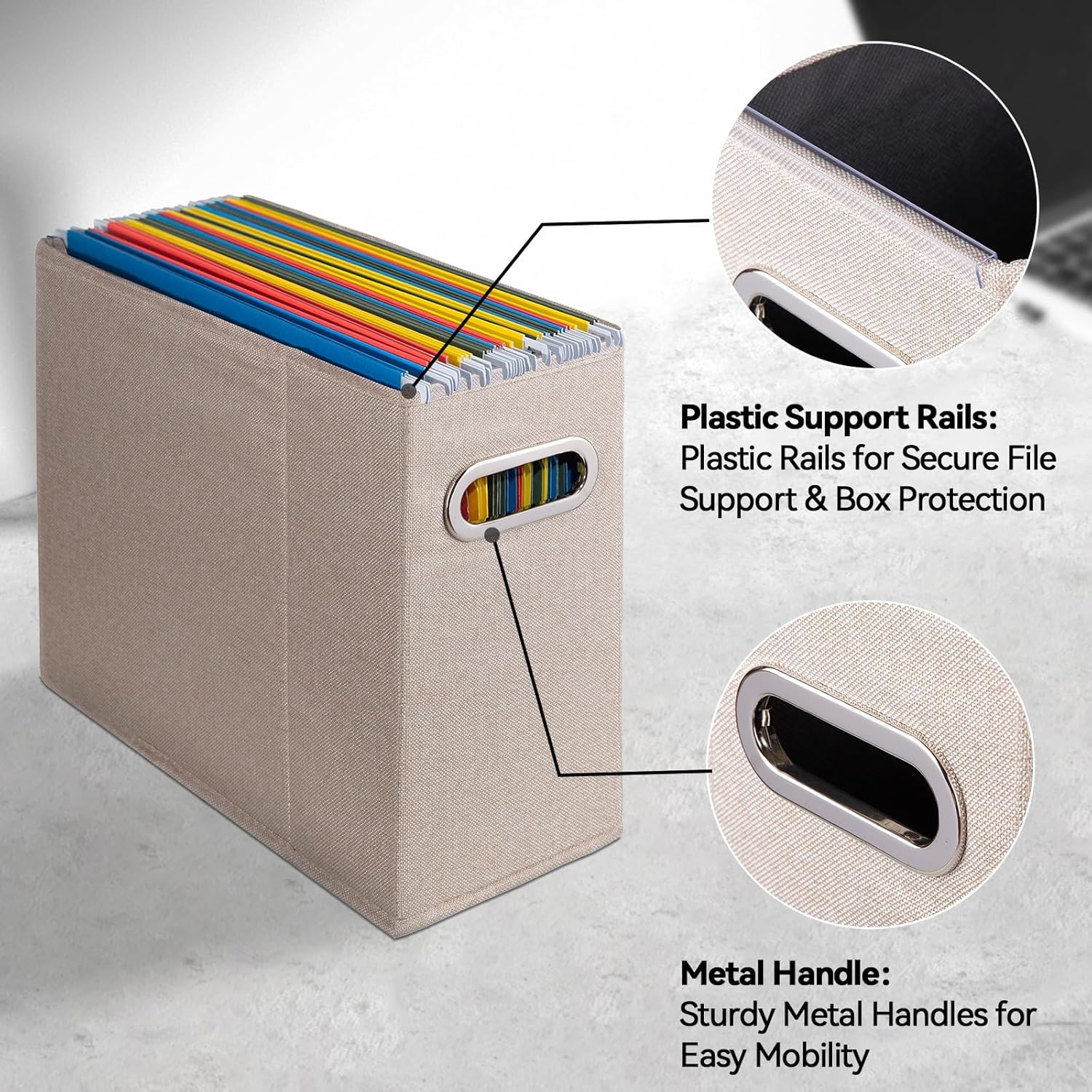 4 Packs Letter Size File Organizer, File Folders Organizer, Fabric Storage Box, Collapsible Paper Organizer with Metal Handle, Smooth PVC Rails, Only Box (Beige)