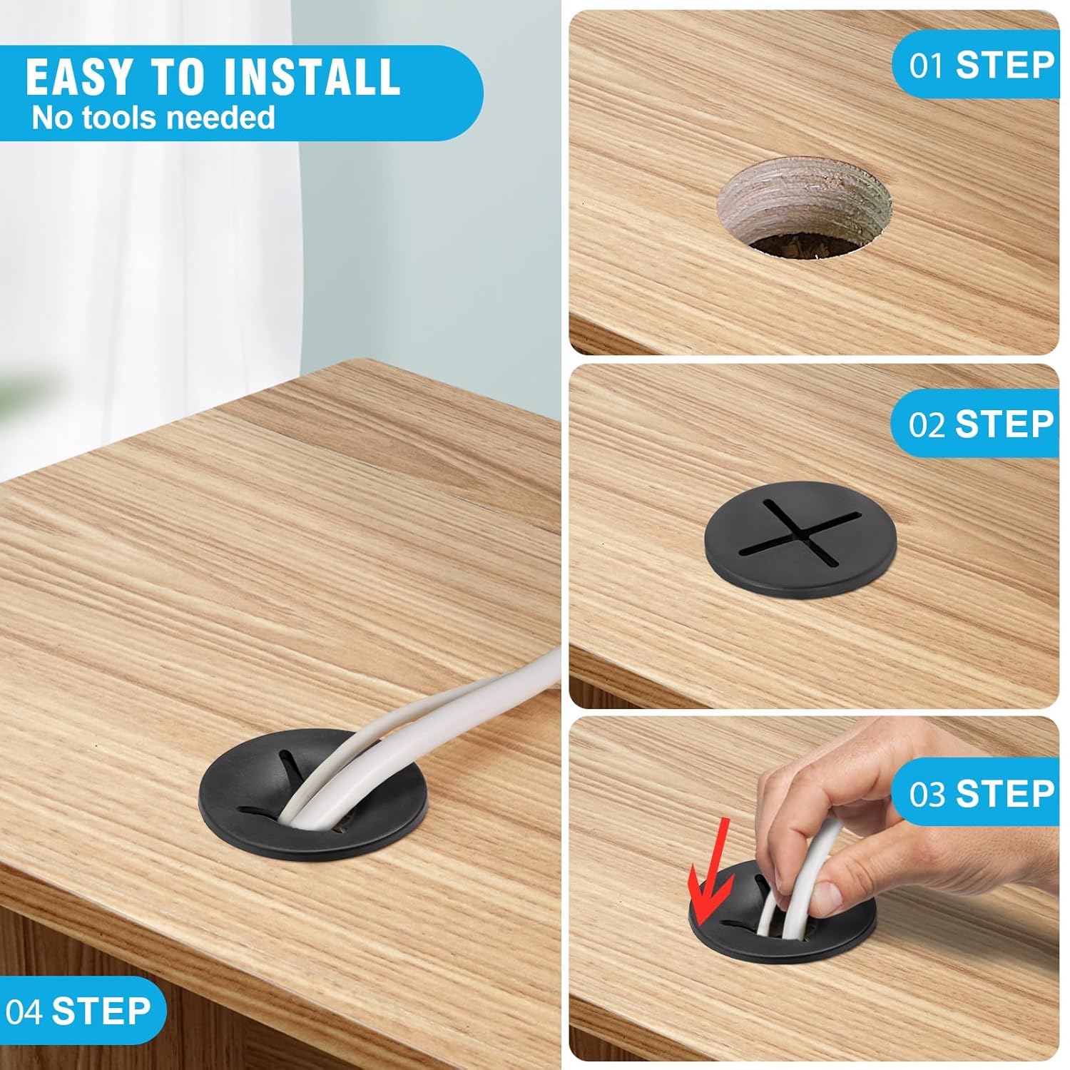 - UPGRADED CABLE MANAGEMENT -- The unique cross-shaped rubber center effectively reduces friction, and minimizes cable wear from rough desk edges. Cables pass through smoothly without damage, and the flexible opening ensures a snug fit for multiple cables while keeping your workspace tidy.