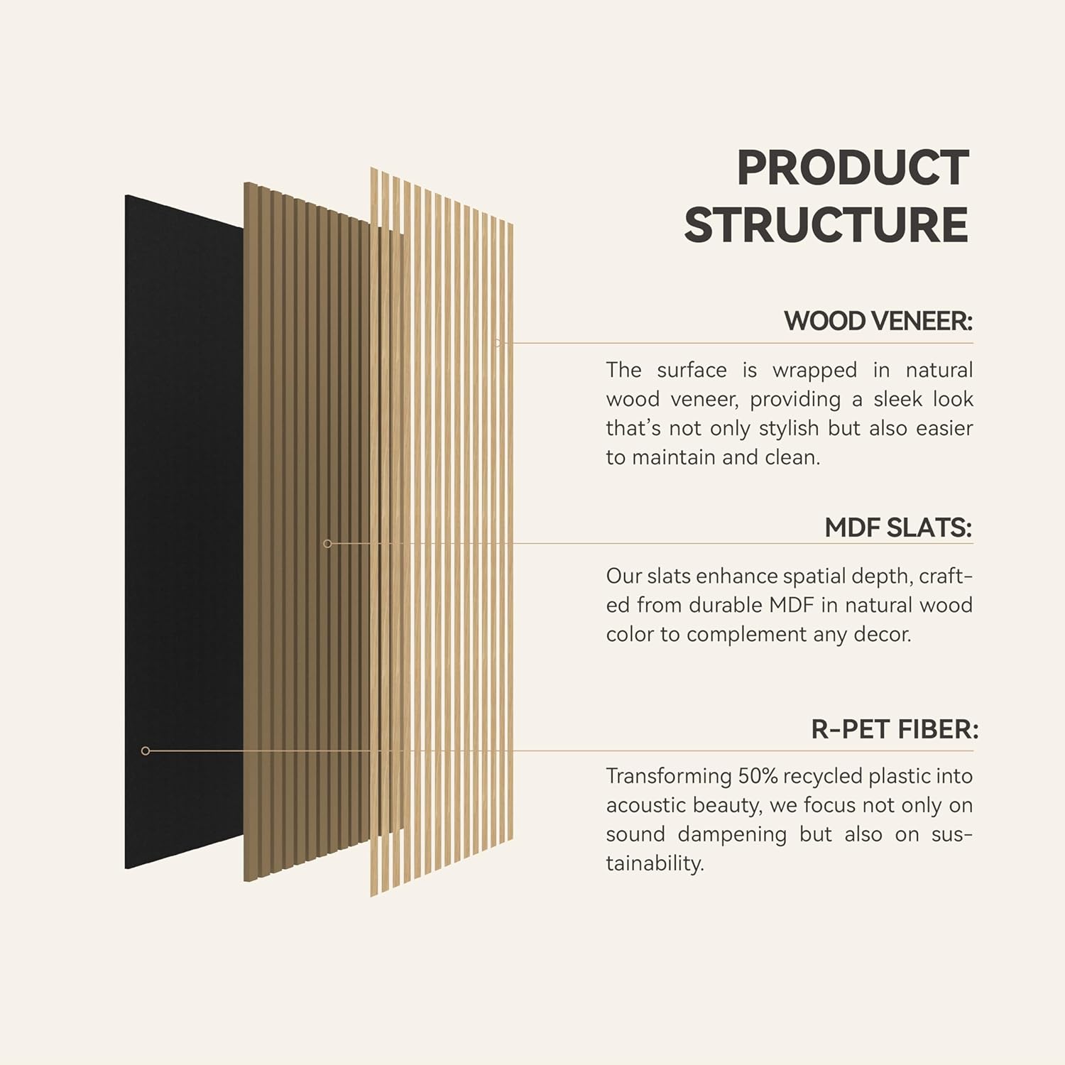 - Clean Modern Finish: Each acoustic wall panel features a realistic wood-textured surface, offering a natural look and feel with no extra finishing needed