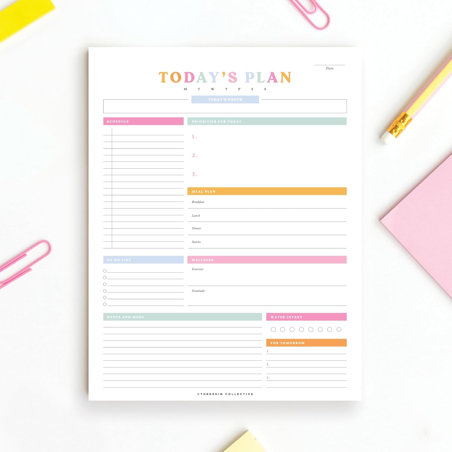 ThreeKin To-Do List Planner – Daily Tear-Off Notepad (50 Sheets, 8.5” x 11”) for Maximum Productivity – Colorful Layout for Work, School & Home – USA Women-Owned Brand