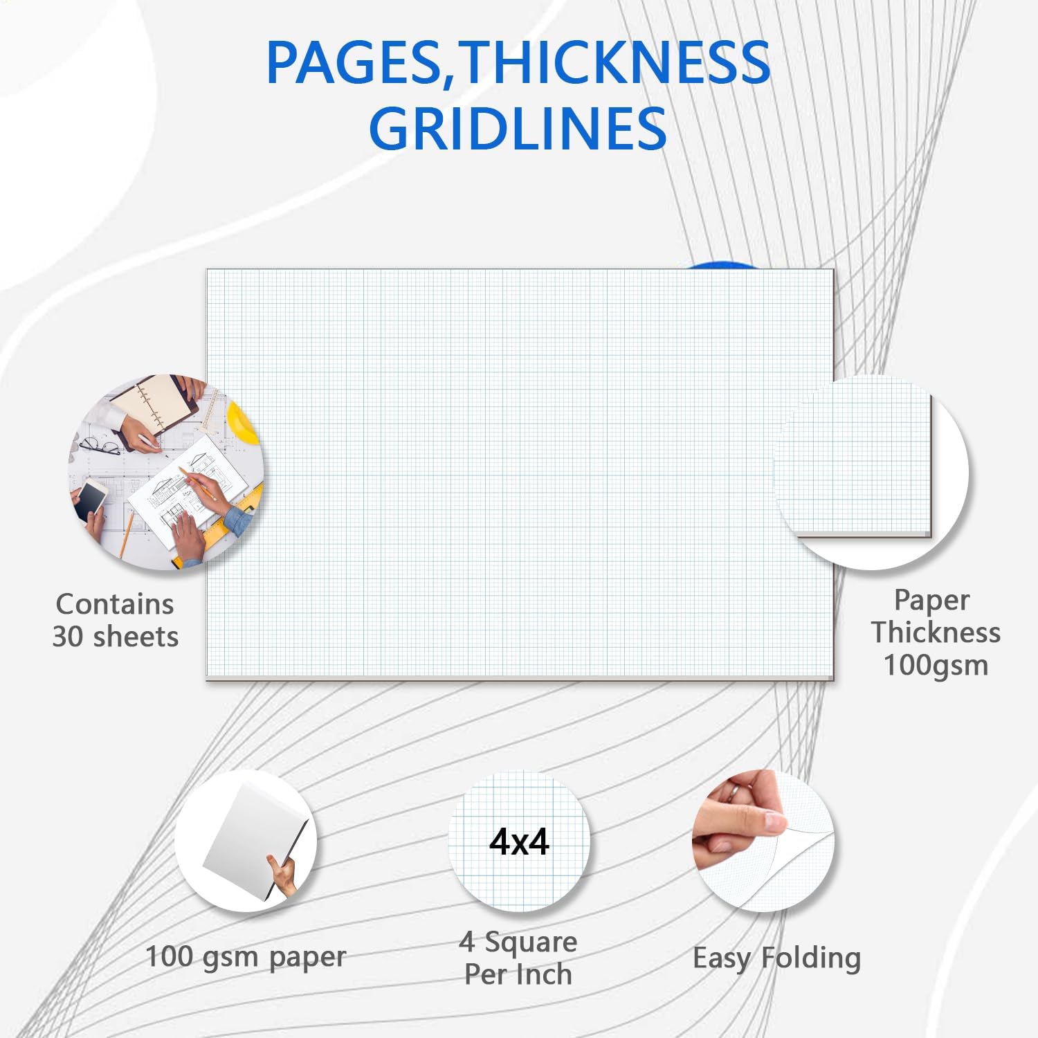 - Plenty of Pages - With a total of 30 sheets/60 pages, this quadrille large grid paper pad with blue grid has plenty of room for all your drawing needs. Ideal for students, engineers and designers alike, it provides the necessary volume for all your technical drawing needs.
