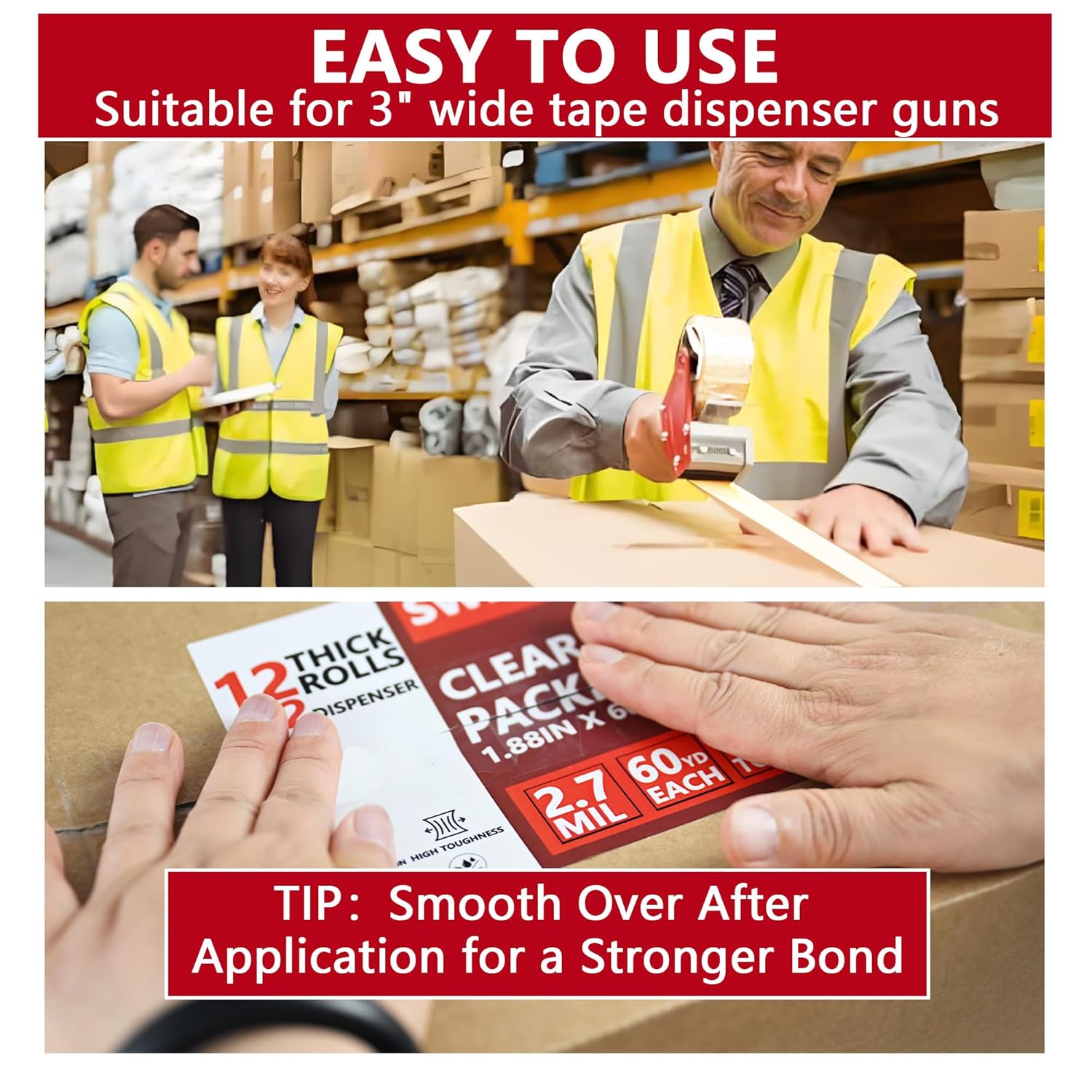 - Crystal Clear Transparency:Shows labels & barcodes instantly; no need to cut tape around important info. Ideal clear packing tape for professional packaging