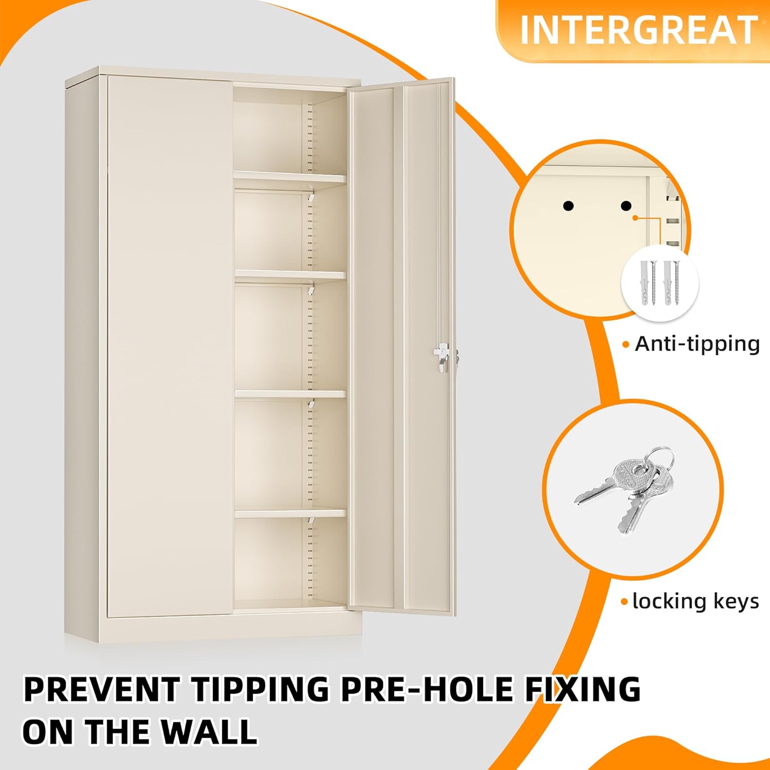 - 【Receiving note】: Lockable storage cabinet include instructions and installation videos, before assembling, double-checked all parts of intergreat cabinet you received.