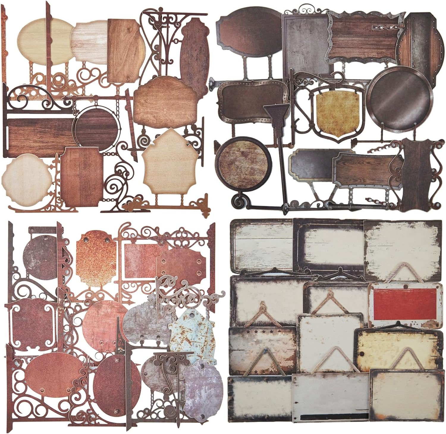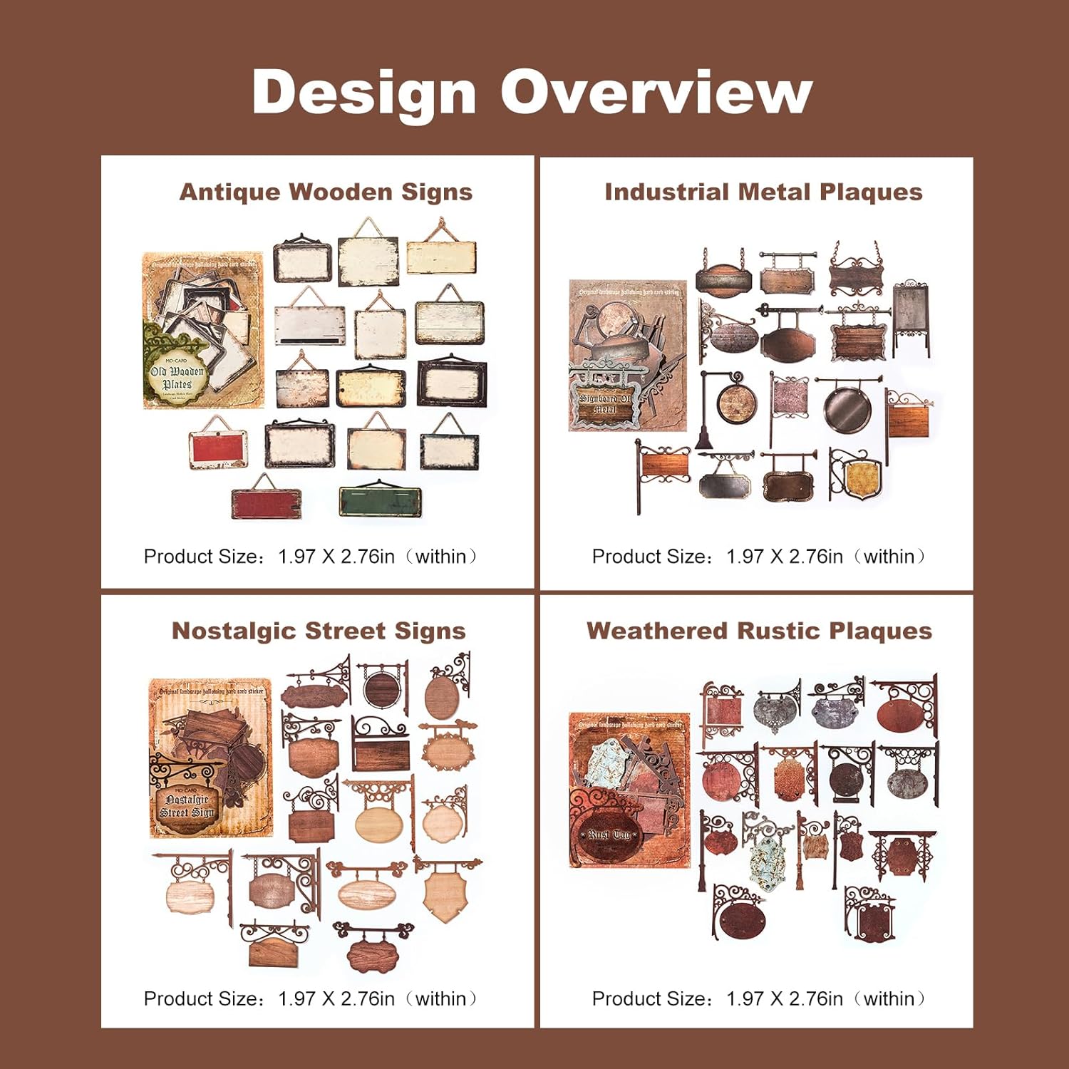 - Unique Vintage Designs: This set includes 60 pieces of retro-style signboard stickers, featuring four distinct themes β Rust Tag, Old Wooden Plates, Signboard of Metal, and Nostalgic Street Sign. Each set contains 15 different designs, ideal for adding a rustic and nostalgic touch to your scrapbooking and journaling projects