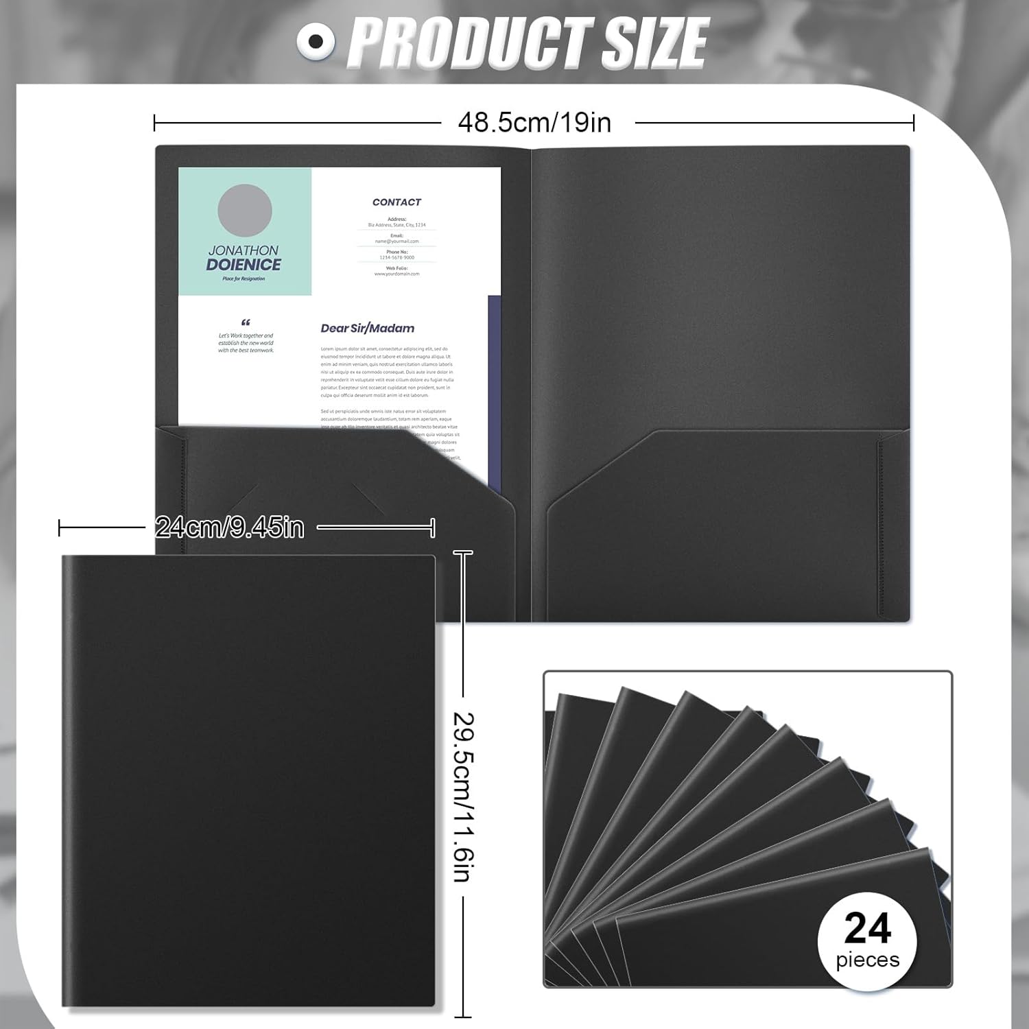 - Enough Quantity to Use and Replace: you will receive 24 pieces black plastic folders, each is designed with 2 pockets, fitting 8.5 x 11 inch letter size paper; Each pocket can stack 50 pages of letter size paper easily and neatly