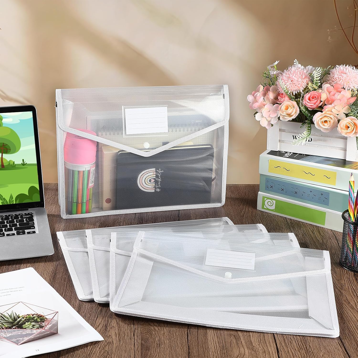 10 Pieces Plastic File Folders Envelope Expanding File Wallet Organizer Documents Folder with Snap Closure and Pocket B4 Waterproof Transparent Pouch for School Office(White,Horizontal)