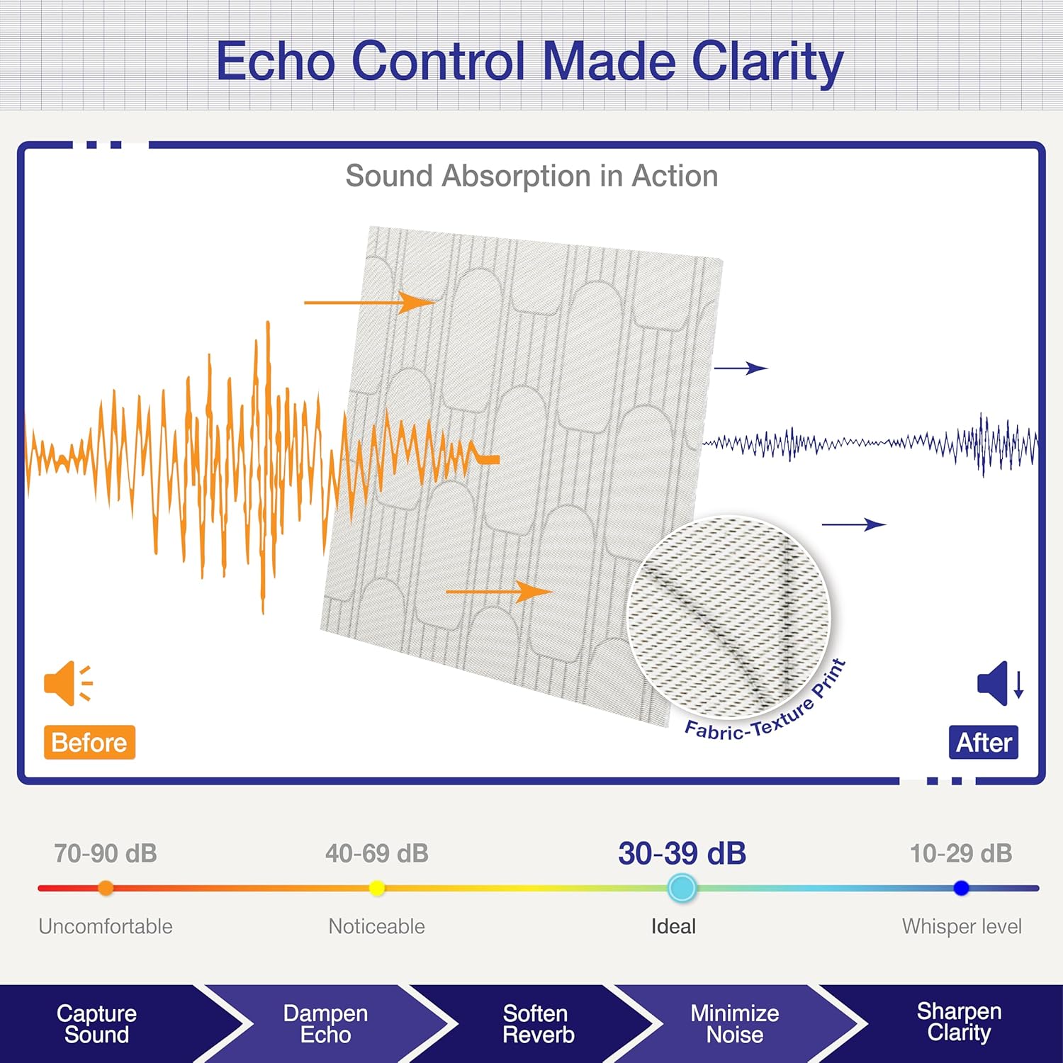 • 🏠【Flexible Coverage for Any Space】Each pack covers 23.6" x 23.6"x 0.4" per panel (One set of 23.2 sq. ft. total covered area), giving you customizable coverage for small offices to large living rooms. Combine multiple sound absorbing panels to create a wall of sound proofing panels for maximum echo control and design impact.