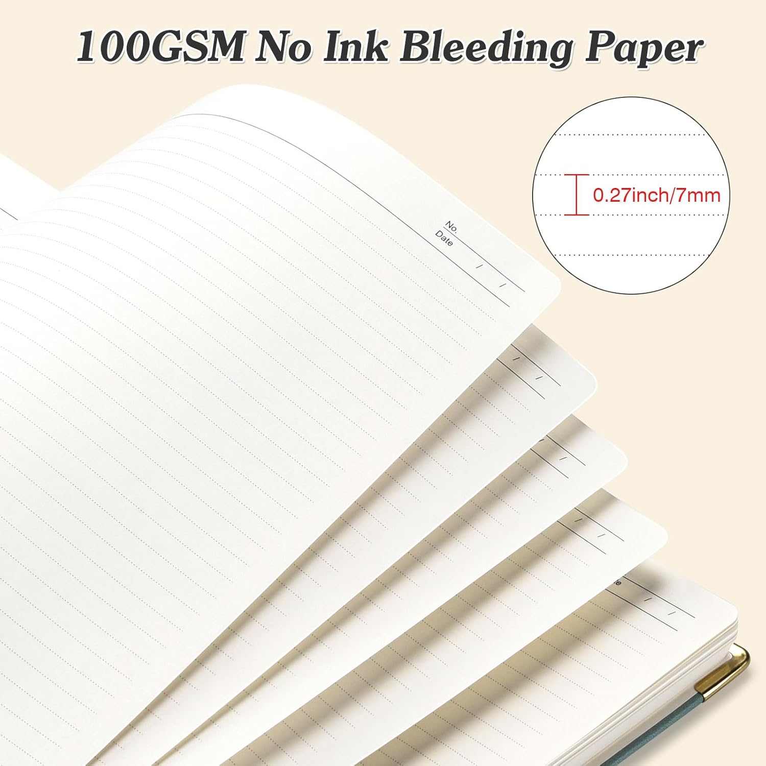 - 【100GSM No Ink Bleeding Paper & Large A5 Size】College ruled notebook features high-quality 100GSM creamy white paper, thicker than common market alternatives. This prevents ink bleed-through and ghosting, providing protection for your eyes. With spacious A5 dimensions (6" x 8") and a 7.1mm line spacing, you'll have ample room for notes, sketches, and plans without feeling cramped.