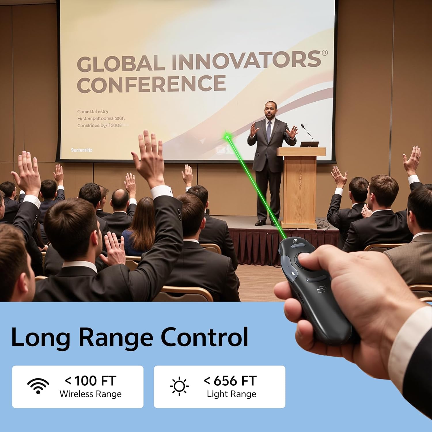 - [Bright Green Lazer Pointer] The green laser pointer of presentations can target, accentuate, or draw attention to particular parts of your slides, graphs, pictures, etc. Power point clicker wireless Red Laser Pointer Range: 328FT/100M.