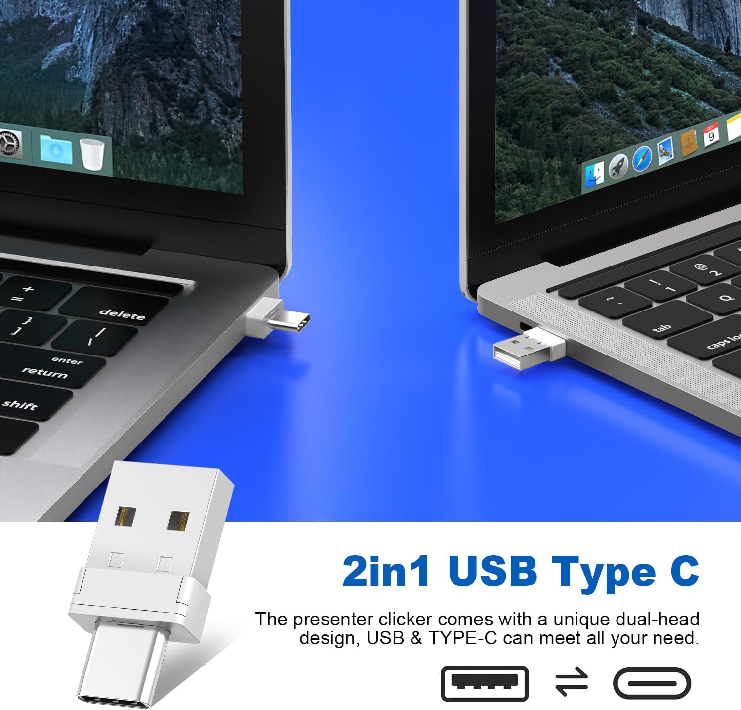 QUI Presentation Clicker Wireless Presenter Remote Clicker for PowerPoint Presentation Remote, PowerPoint Slide Advancer for Mac/Windows/Linux, Google Slide/PPT/Keynote, Type-c Blue