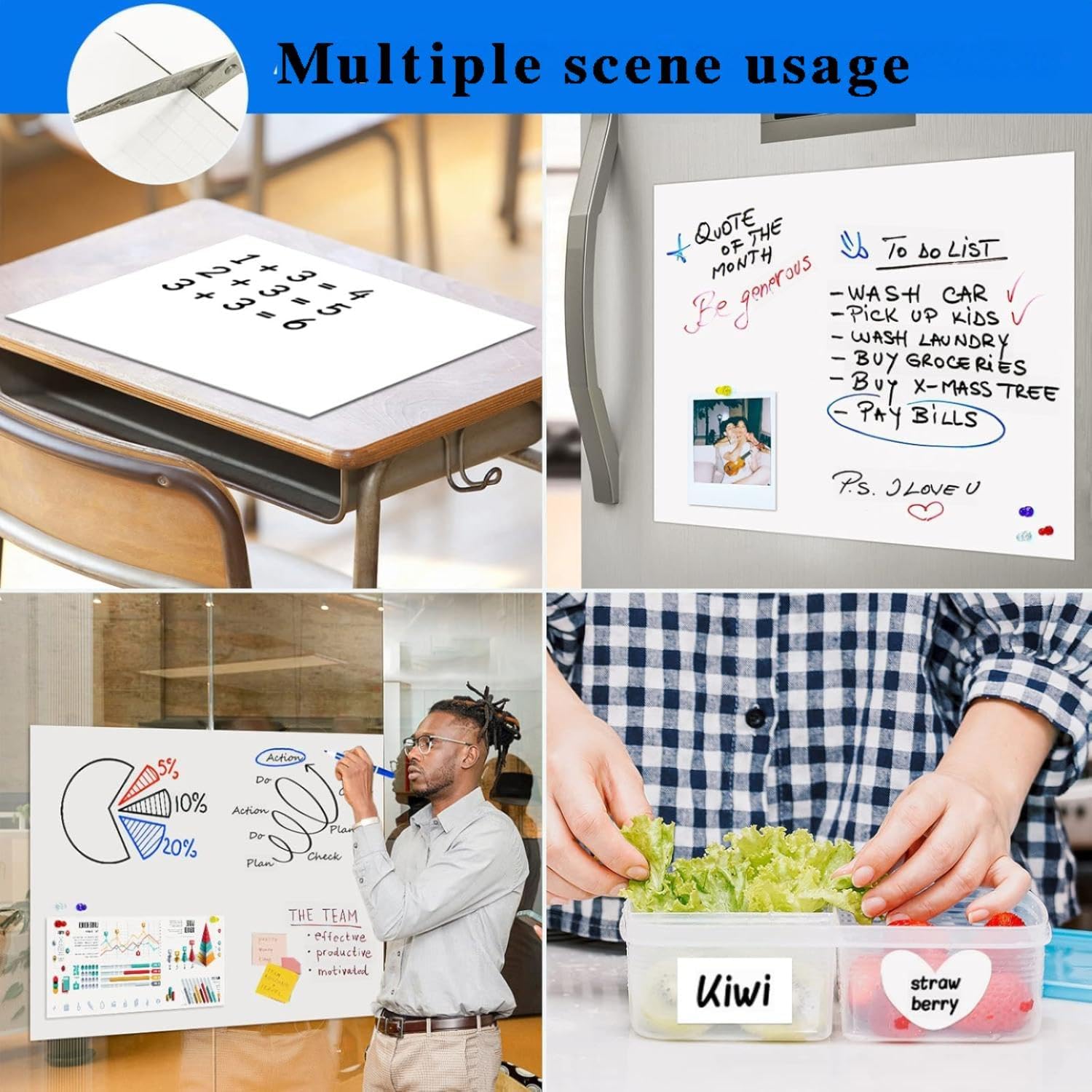 - [Cuttable Design]:Designed with a measurement grid on the release paper, this magnetic whiteboard sticker can be easily cut to any size with scissors or a utility knife. Perfect for customizing message boards, schedules, or wall planners in offices, schools, and homes.