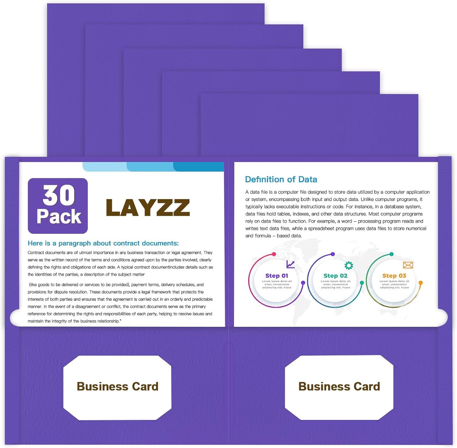 Folders with Pockets, LAYZZ 30 Pack Paper Pocket Folders, 2 Pocket Folders Fits Letter Size Paper, for School Office and Home (Purple)