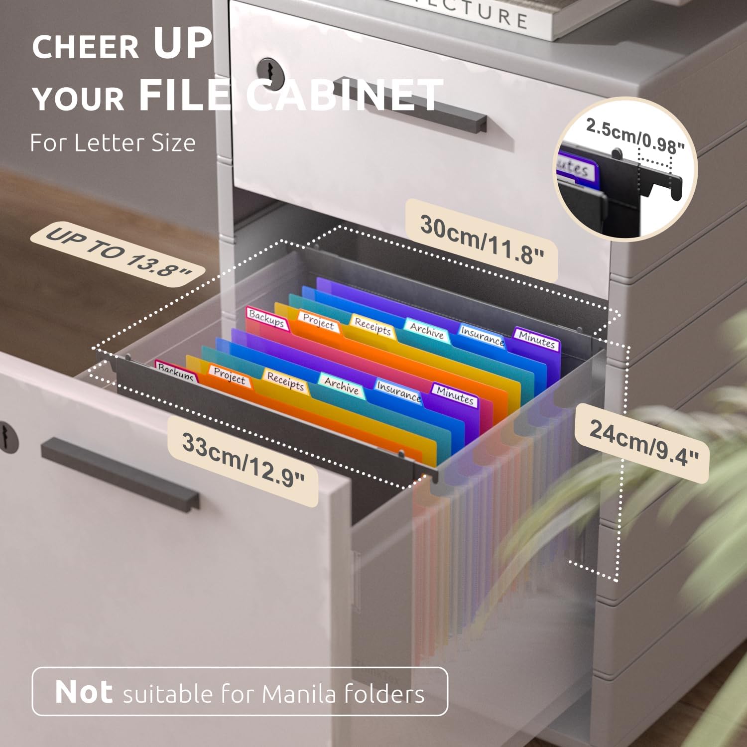 - 【CLEAR CLASSIFICATION, QUICK SEARCH】6 bright colors on the inside pages liven up files. Hanging folder with colorful removable labels, the file folder organizer makes file categories clear at a glance for quick file location. In filing cabinets, clear markings help you quickly find the right folder, making file - searching easy.