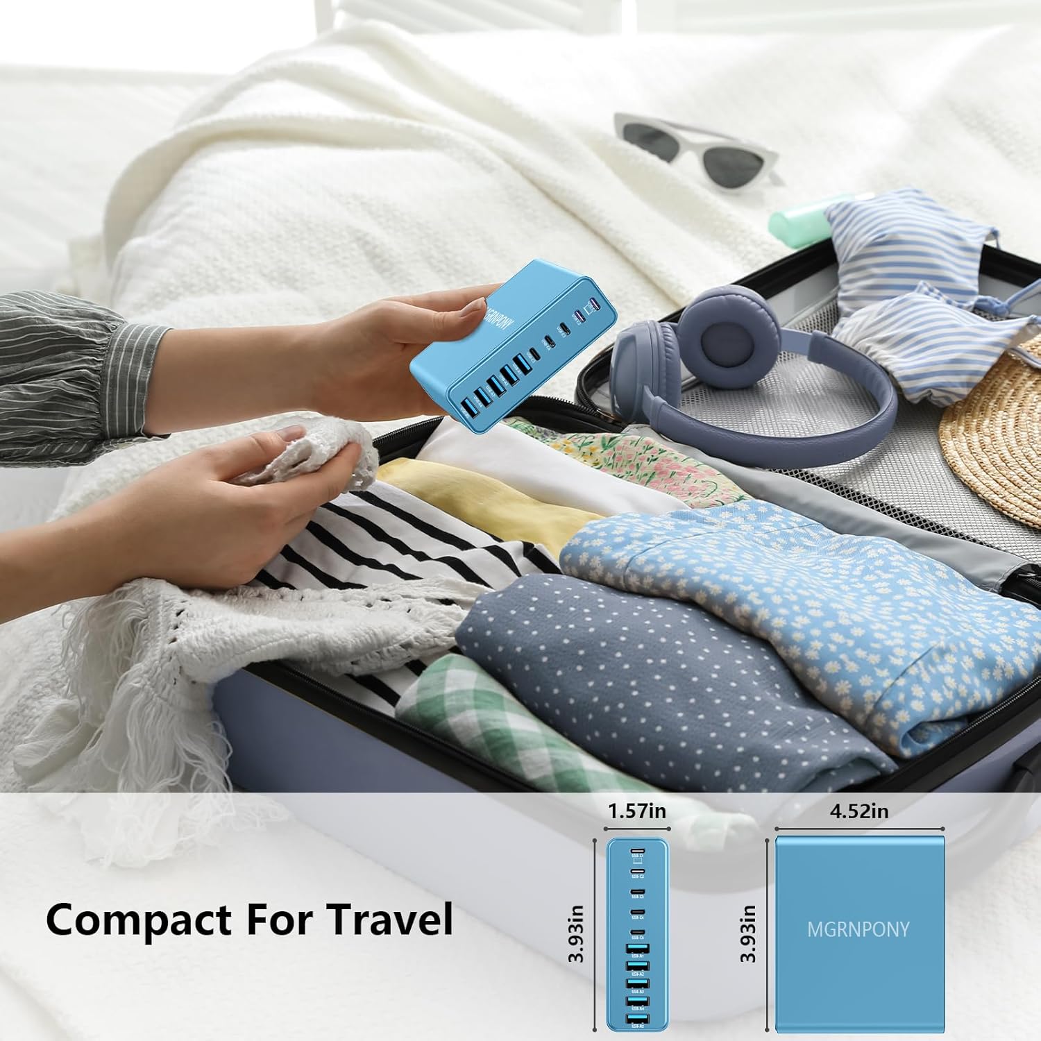 320W USB C Charger Block, 10-Port USB C Charging Station GaN III PD 65W PC Laptop Fast Charger Adapter for MacBook Pro/Air, DELL, iPad, iPhone, Samsung Galaxy (Light Blue)