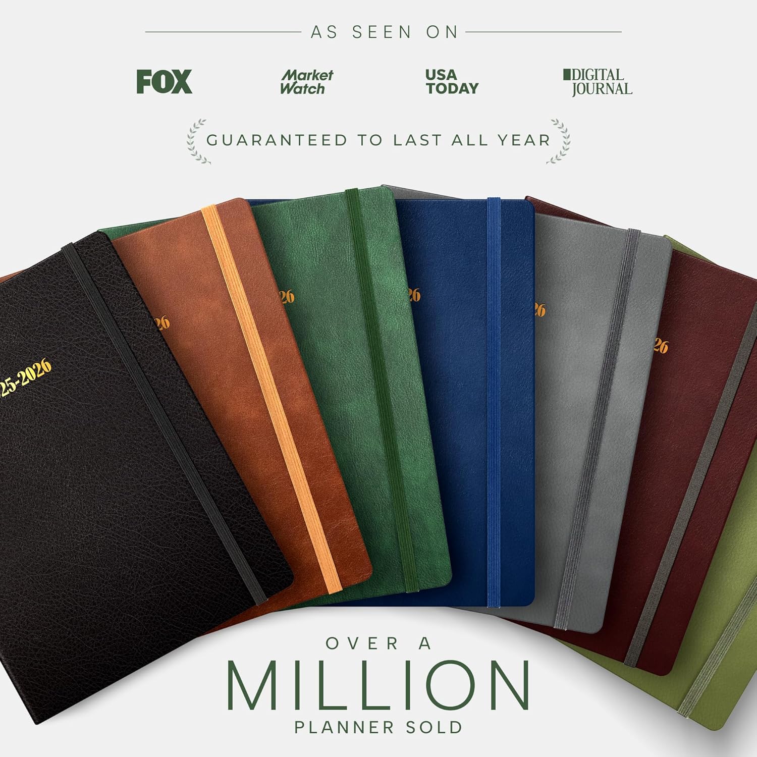 Ensight 2025-2026 HARDCOVER Leather Planner Weekly & Monthly - 6.5x8.5 Inches - Academic Planner Business Personal or Student - Pen Holder, Thick Paper, July 2025 - June 2026 (Green)