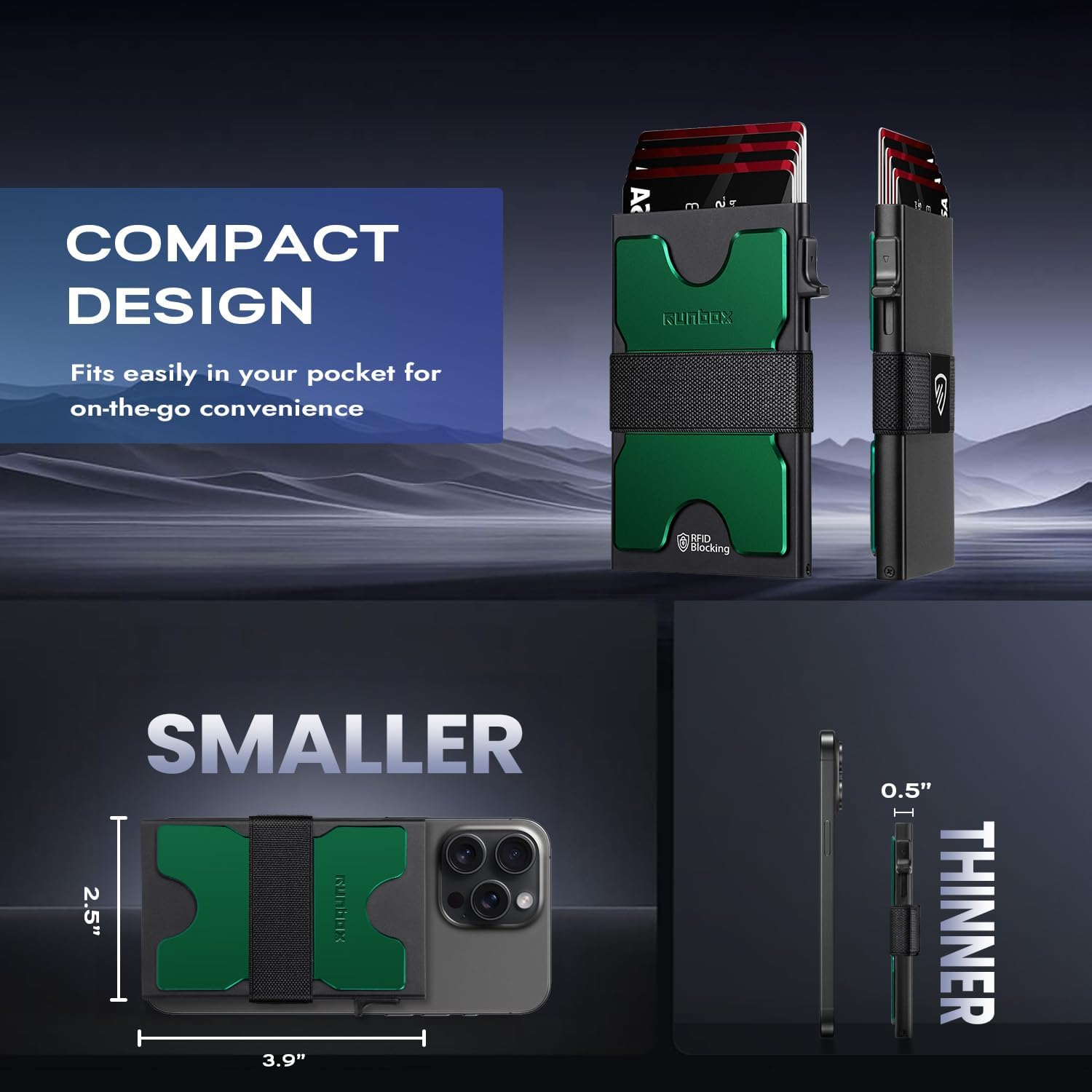 - Quick Access & Expandable Capacity (Holds 1-12 Cards): Experience effortless card access with our patented pop-up button mechanism – press to instantly eject cards. The main aluminum card holder compartment holds 4-6 cards(depending on embossed designs), while the expandable metal backplate adds 6-8 extra slots. *Total capacity varies with card thickness