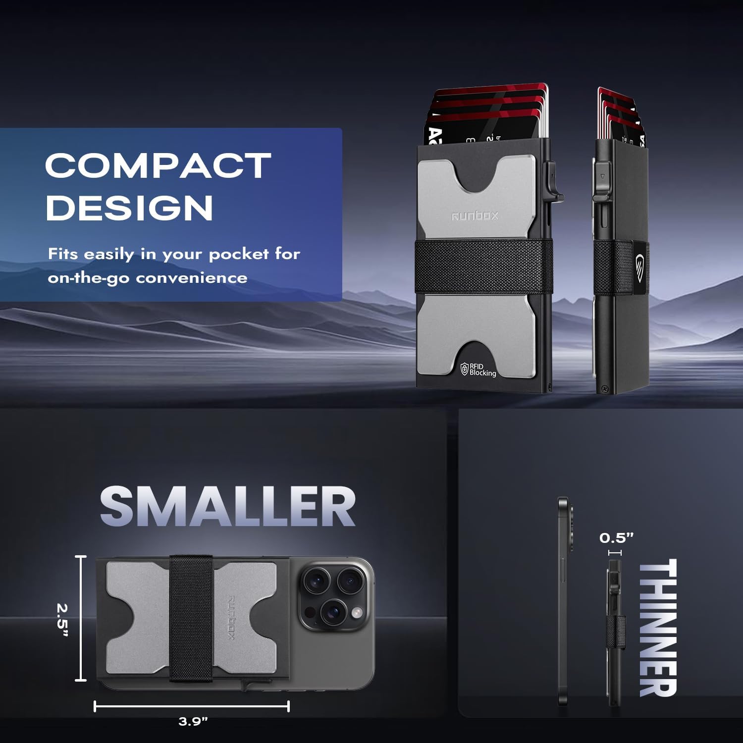 - SLIM WALLET FOR MEN with Ultra Thin & Lightweight Design: At just 0.5" thick and 2.6oz, this minimalist tactical wallet slips seamlessly into any pocket. Dimensions: 3.9"x2.5" – perfect for discrete everyday carry. The innovative expandable backplate adds storage without bulk, letting you ditch oversized wallets