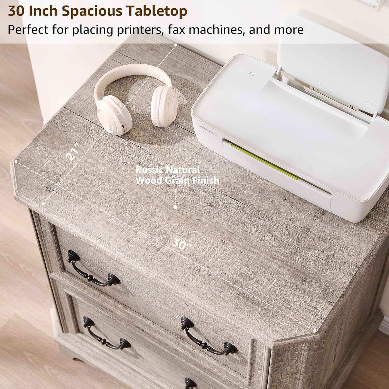 - Exquisite, Robust, and Timeless Design: Experience a blend of Victorian-inspired elegance and modern durability with this 30"L x 21"W x 30"H farmhouse lateral file cabinet. Hexagonal structure design, framed drawer fronts, hand-polished Roman column handles, and natural wood grain textures elevate your home office or living space with structured sophistication. Heavy and gorgeous, with a rich and natural look