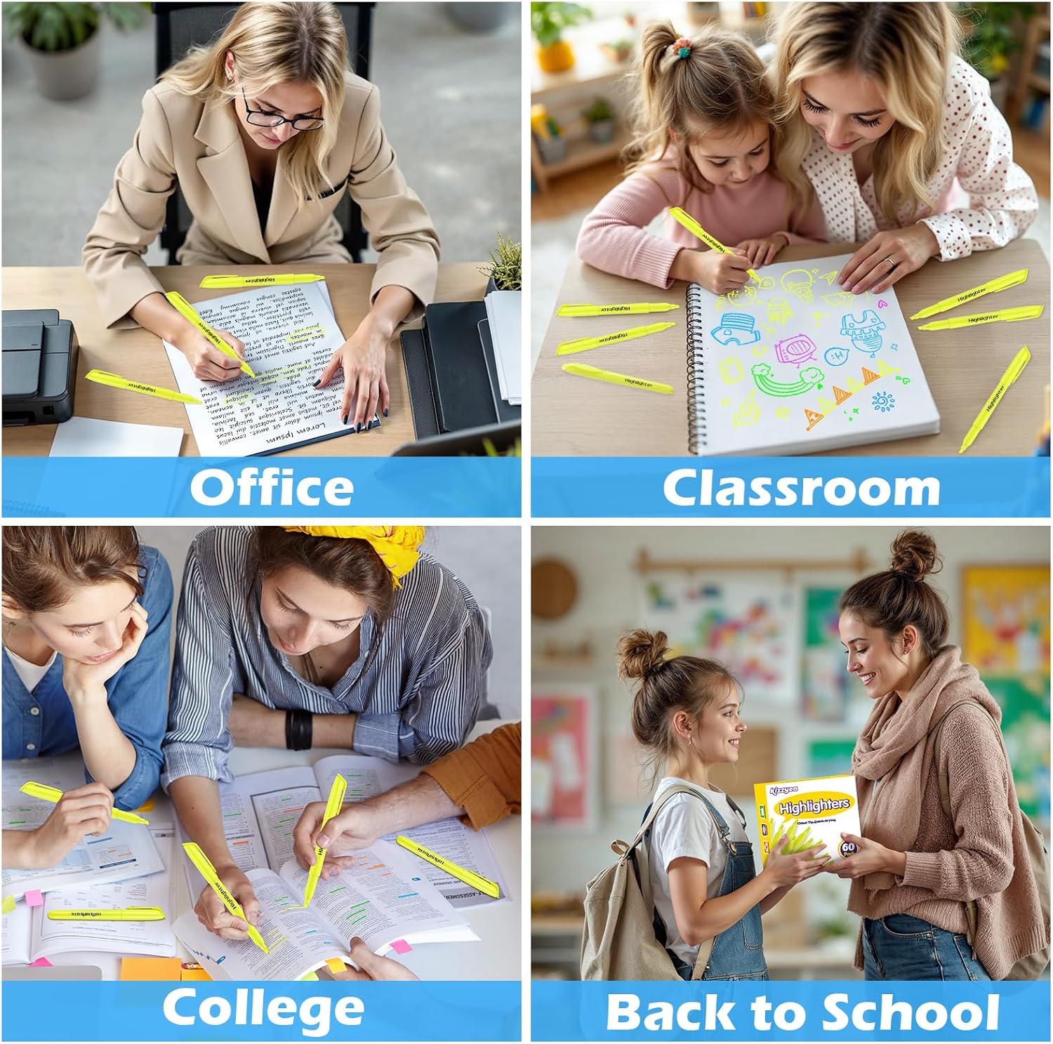 KIZZYEA Highlighters, 60 Pack Yellow Highlighters Bulk, Bright Color Chisel Tip & Dry-Quickly, No Bleed Highlighter Markers for Adult Kids, School Supplies for Teachers, Office Classroom Must Have