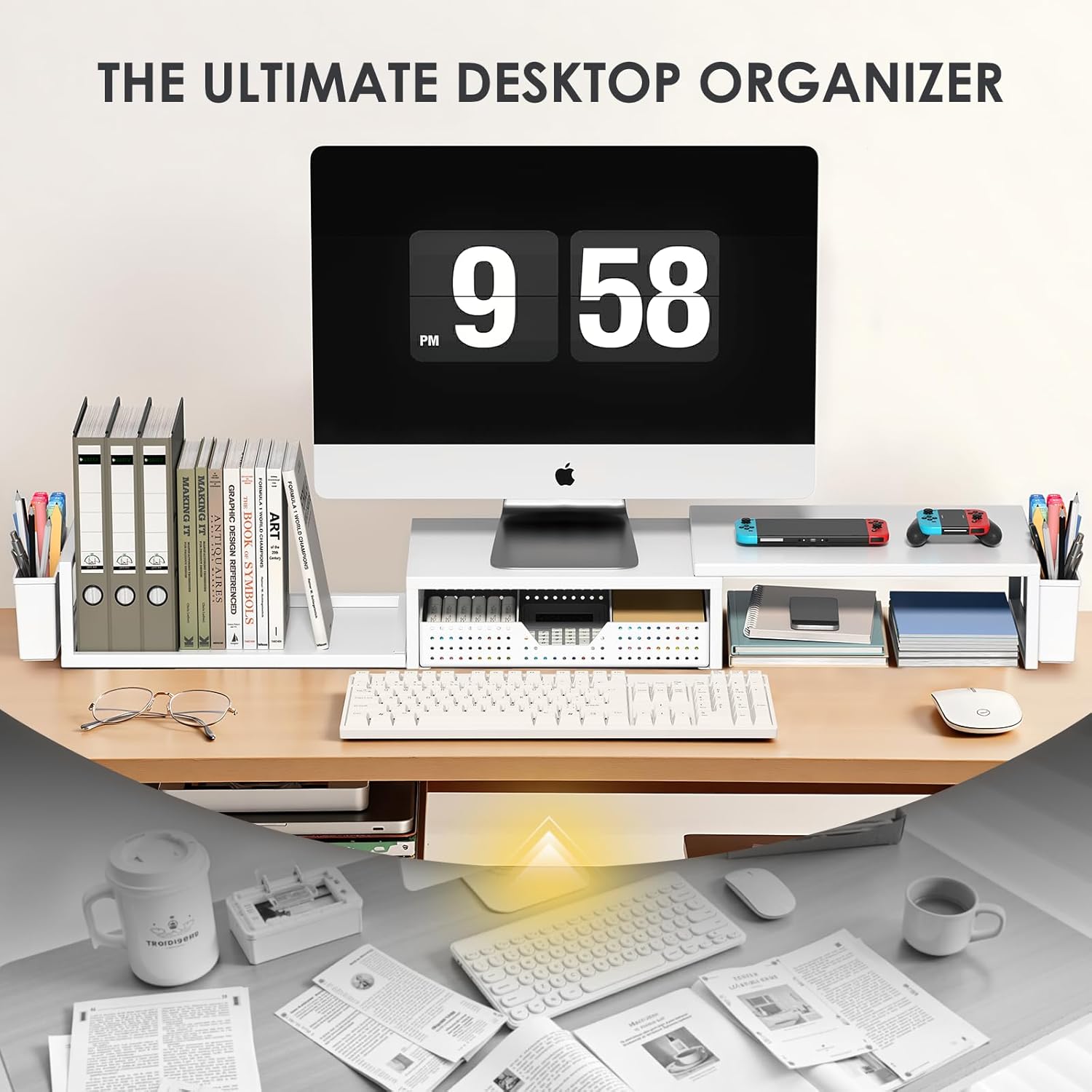 - 【Strong & Stylish】Premium metal construction ensures rock-solid stability for heavy daily use. Our sleek monitor stand for desk blends aesthetics with functionality, transforming clutter into calm. Elevate your workspace organization for a more enjoyable workday