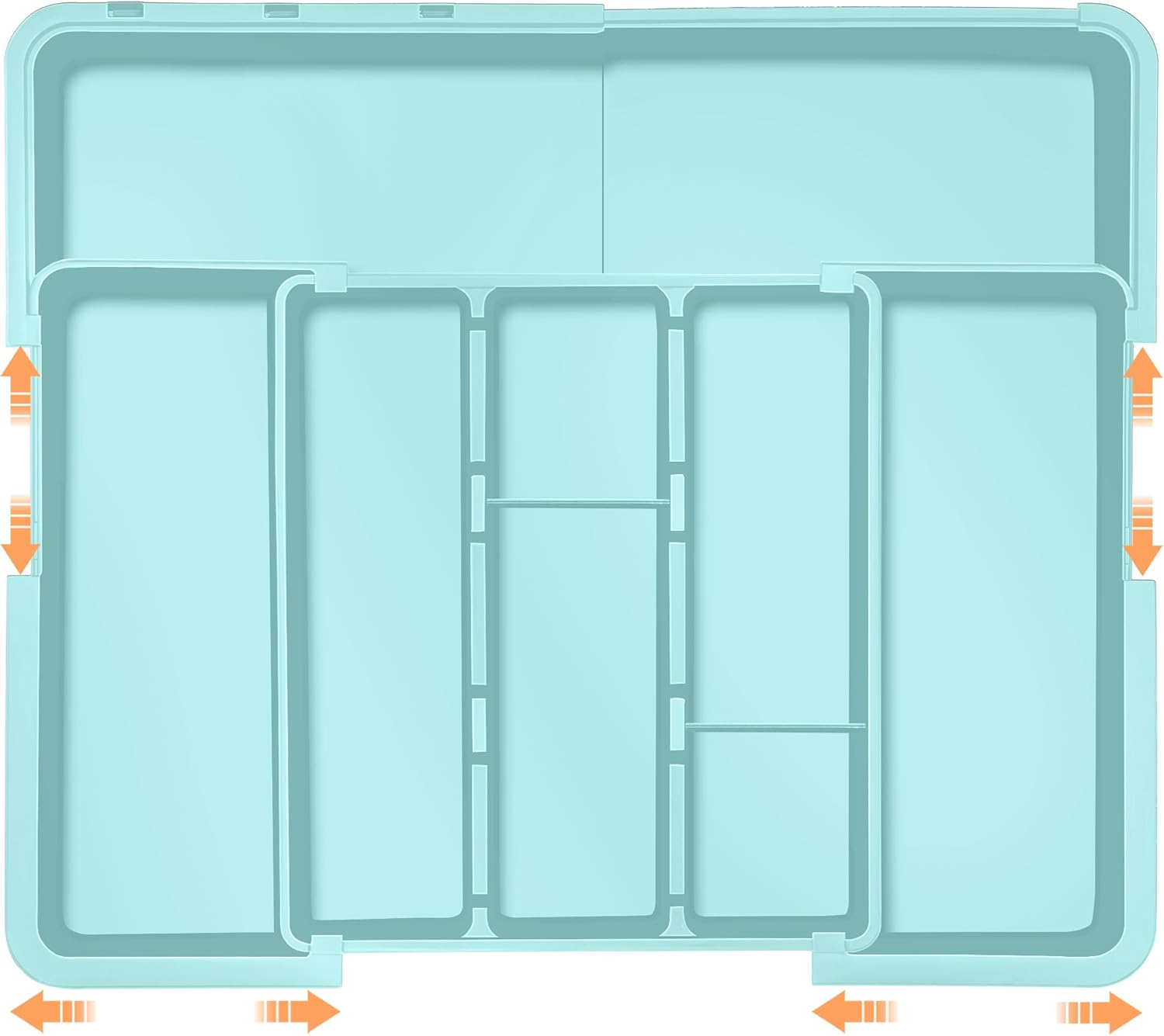 Large Utensil Drawer Organizer Expandable Silverware Organizer for Kitchen Drawer Adjustable Cooking Utensil Holder Cutlery Flatware Tray Spatula Tools Gadgets Storage Dividers Plastic Turquoise