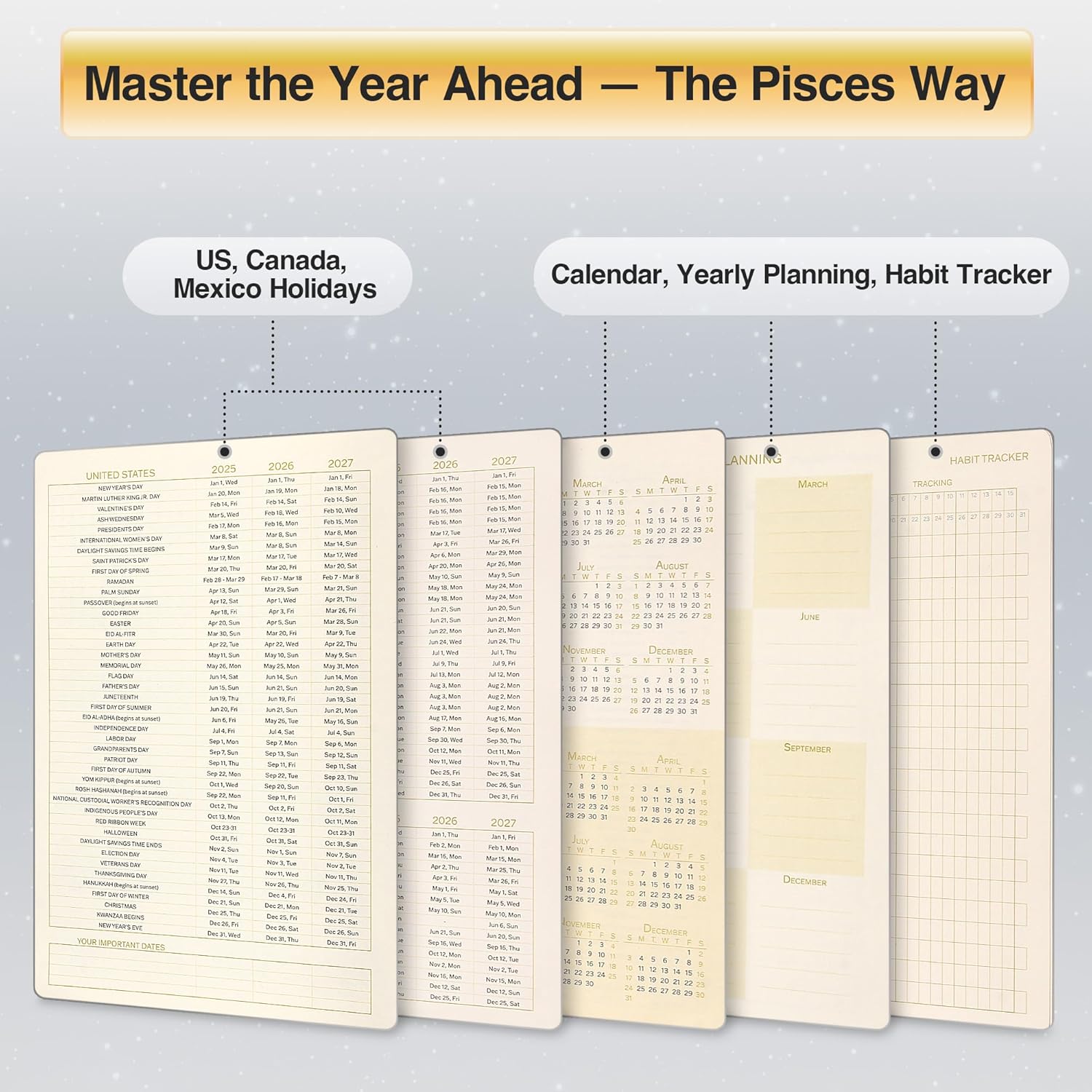 Pisces Zodiac Astrology Undated Monthly Weekly Daily Planner Journal Notebook Hardcover A5 5.7" x 8.3" 160 Pages 100GSM Paper 2025 2026 2027 Holidays Calendar