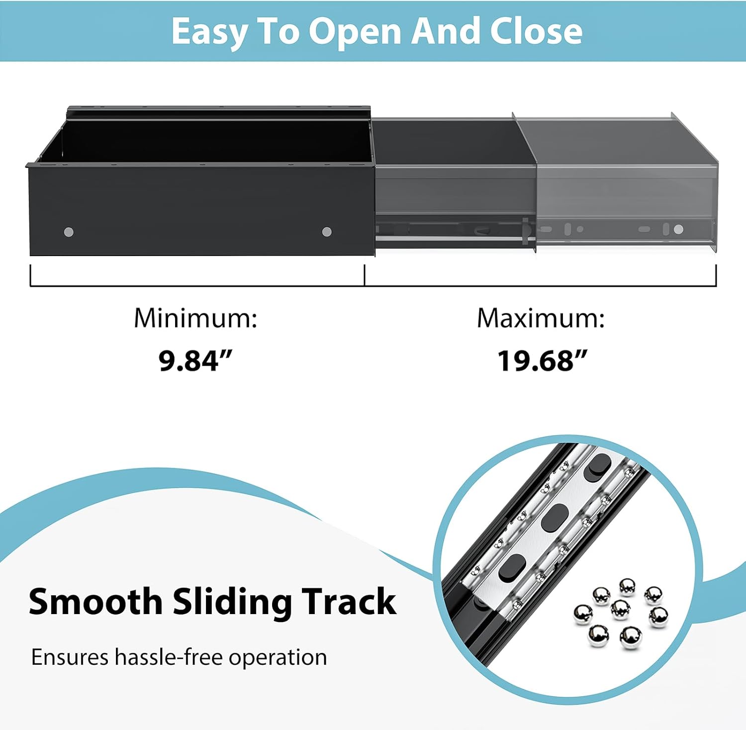 - FULL EXTENSION & SOFT-CLOSE GLIDE — This slide out drawer features full-extension slides for easy access to every corner—no more reaching or digging. Its soft-close mechanism ensures smooth, silent motion and protects your fingers from slamming or pinching during daily use