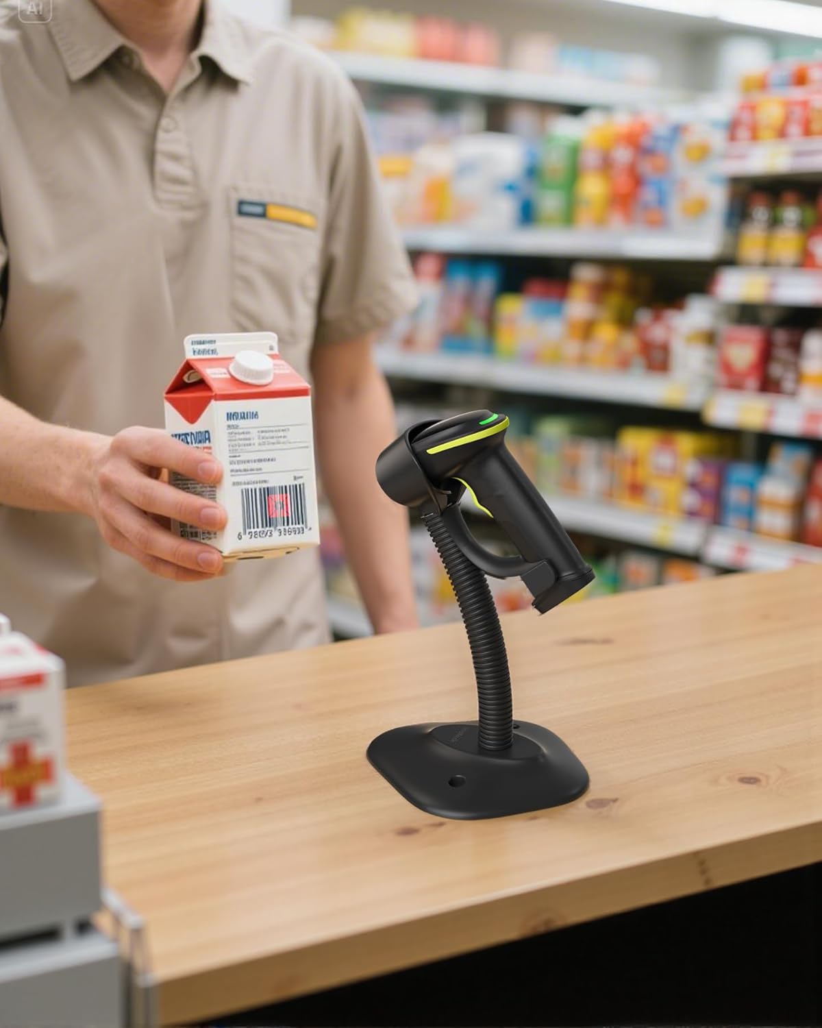 - Wide Range of Applications: Equipped with a stand, the scanner automatically switches the scanning mode when placed on the stand. It supports three notification methods, light, vibration, and beep, and supports manual scanning mode, continuous scanning mode, and hands-free mode, suitable for warehouses, convenience stores, libraries, etc. In inventory mode, it can store 270,000 barcodes, each with a length of 13 characters