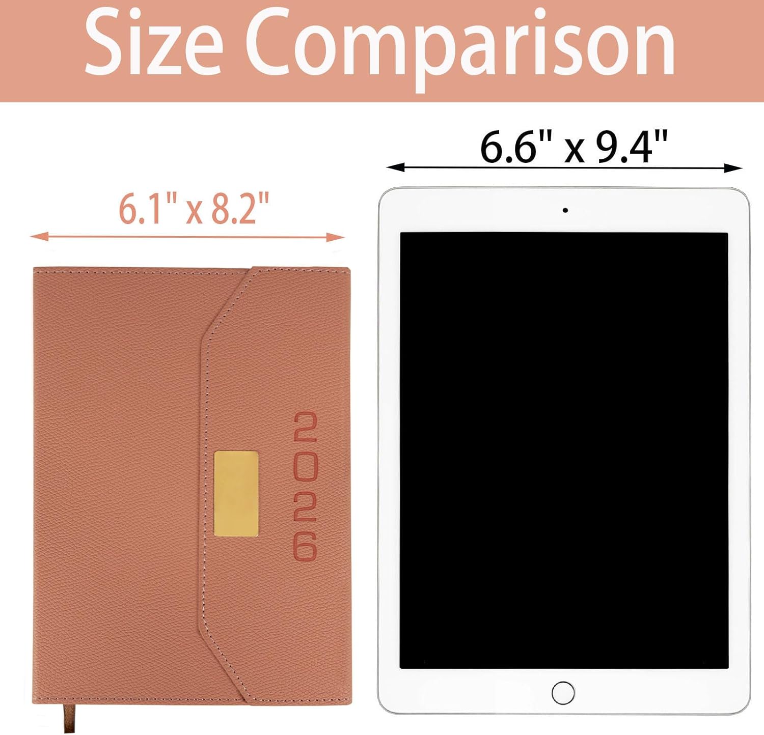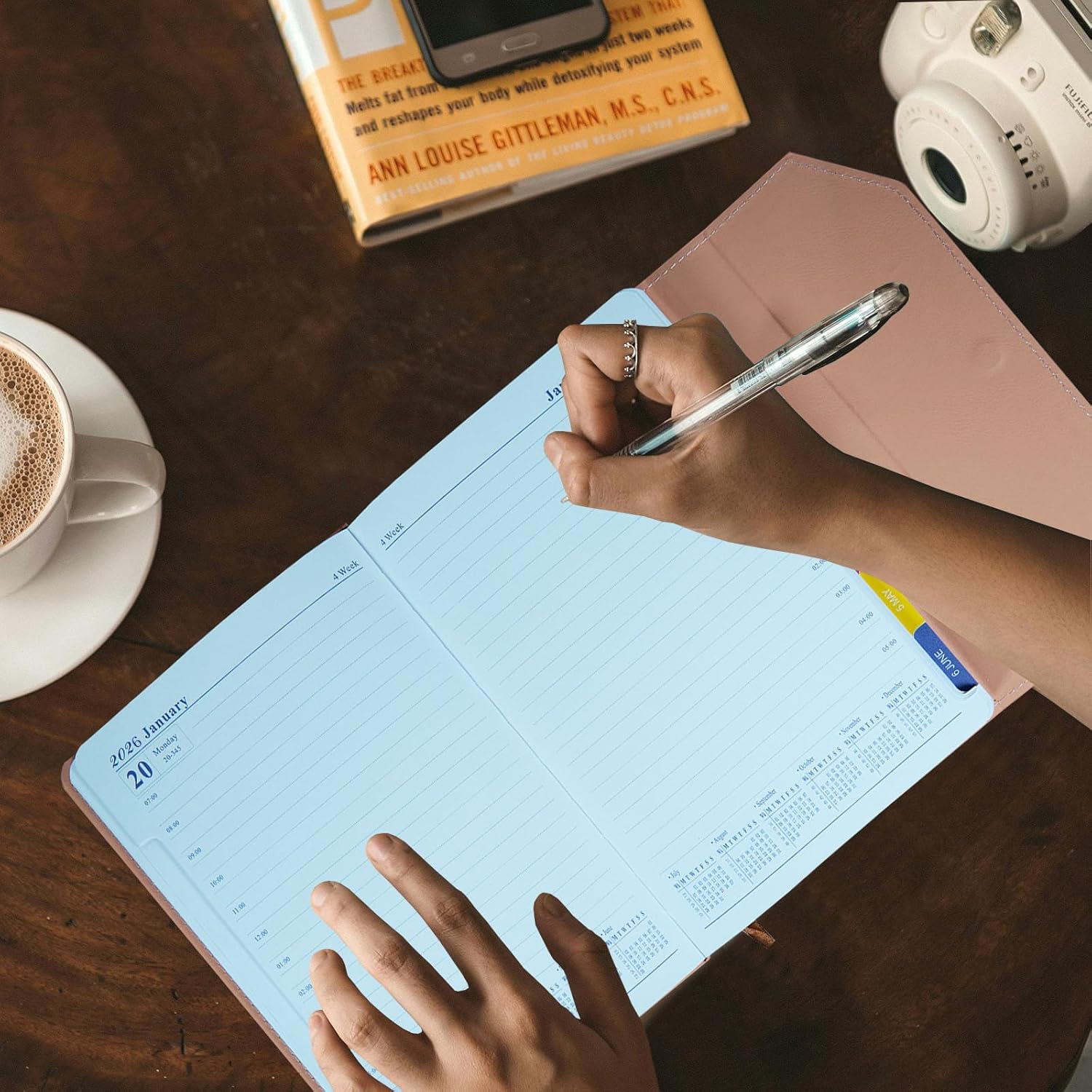 2026 Daily Monthly Planner - Calendar, January - December 2026, 100GSM Thick Paper, Leather Cover, Planner with Hourly Schedule,6.1" x 8.2", Daily Inside Page - Monthly Inside Page, Pen Holder, Bookmarks (Pink)