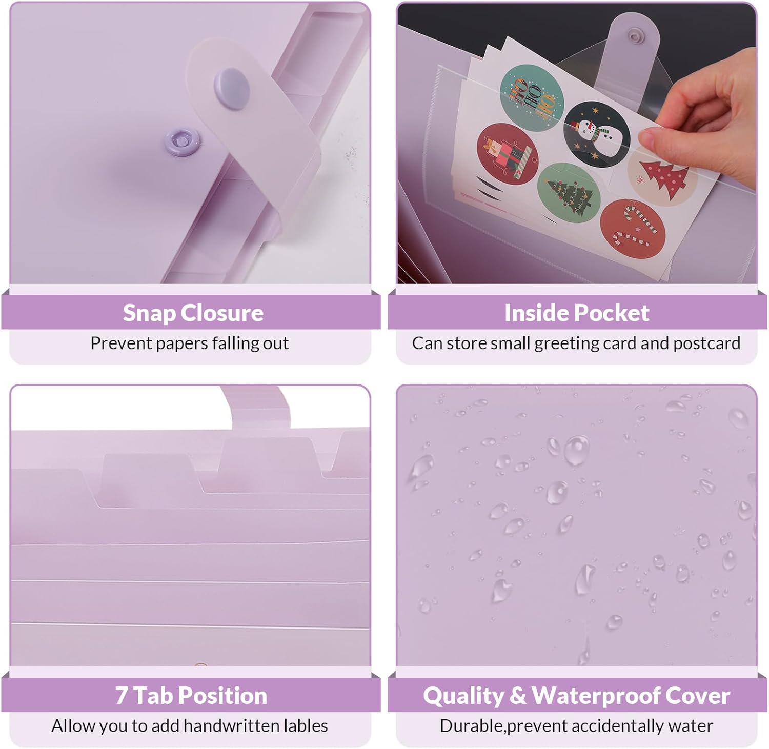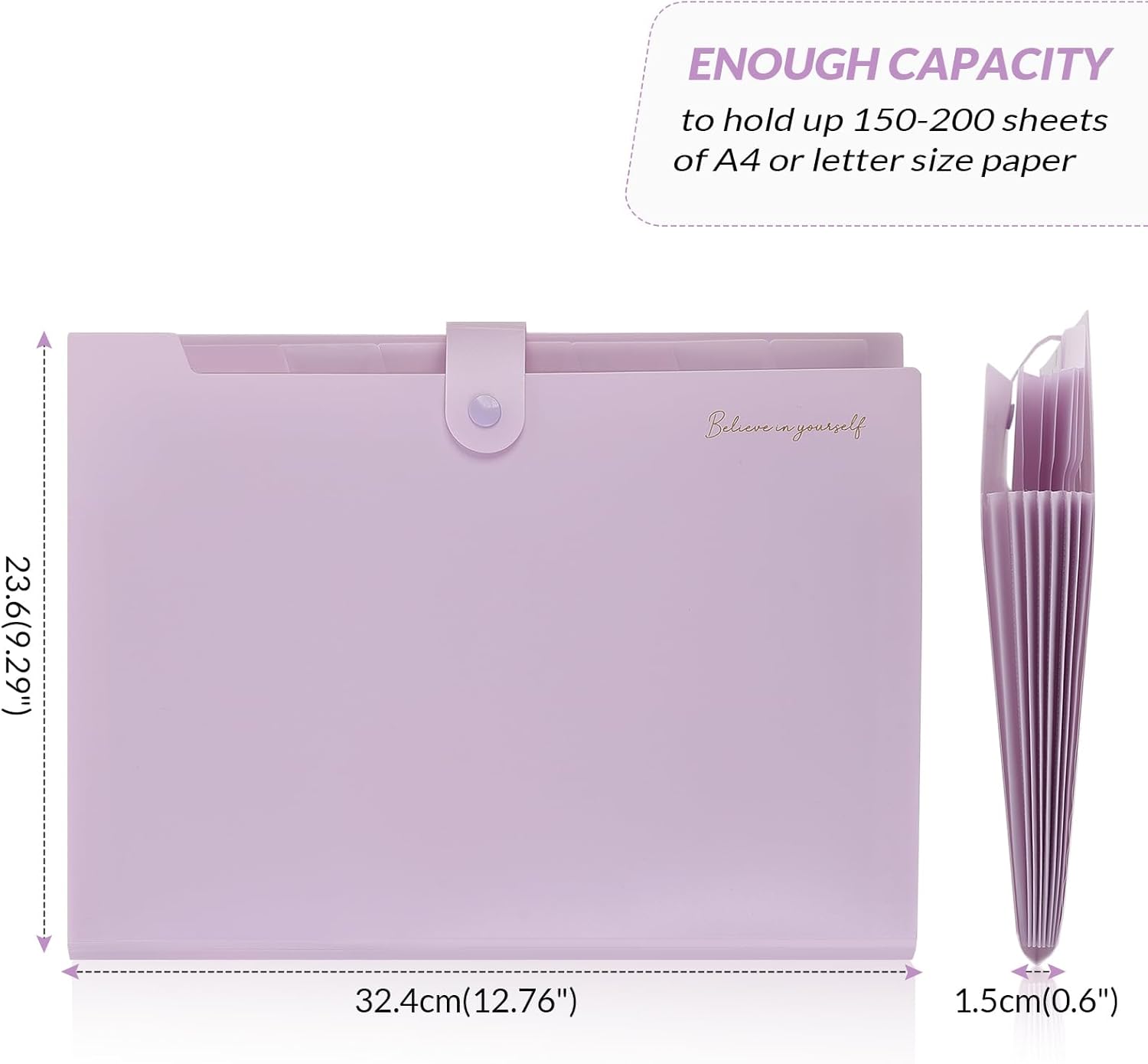 SKYDUE Expanding File Folder, Accordion File Organizer with 8 Pocket & Inner Card Pocket, Expandable Document Paper Receipt Holder for School Office Hospital, Letter/A4 Size Purple