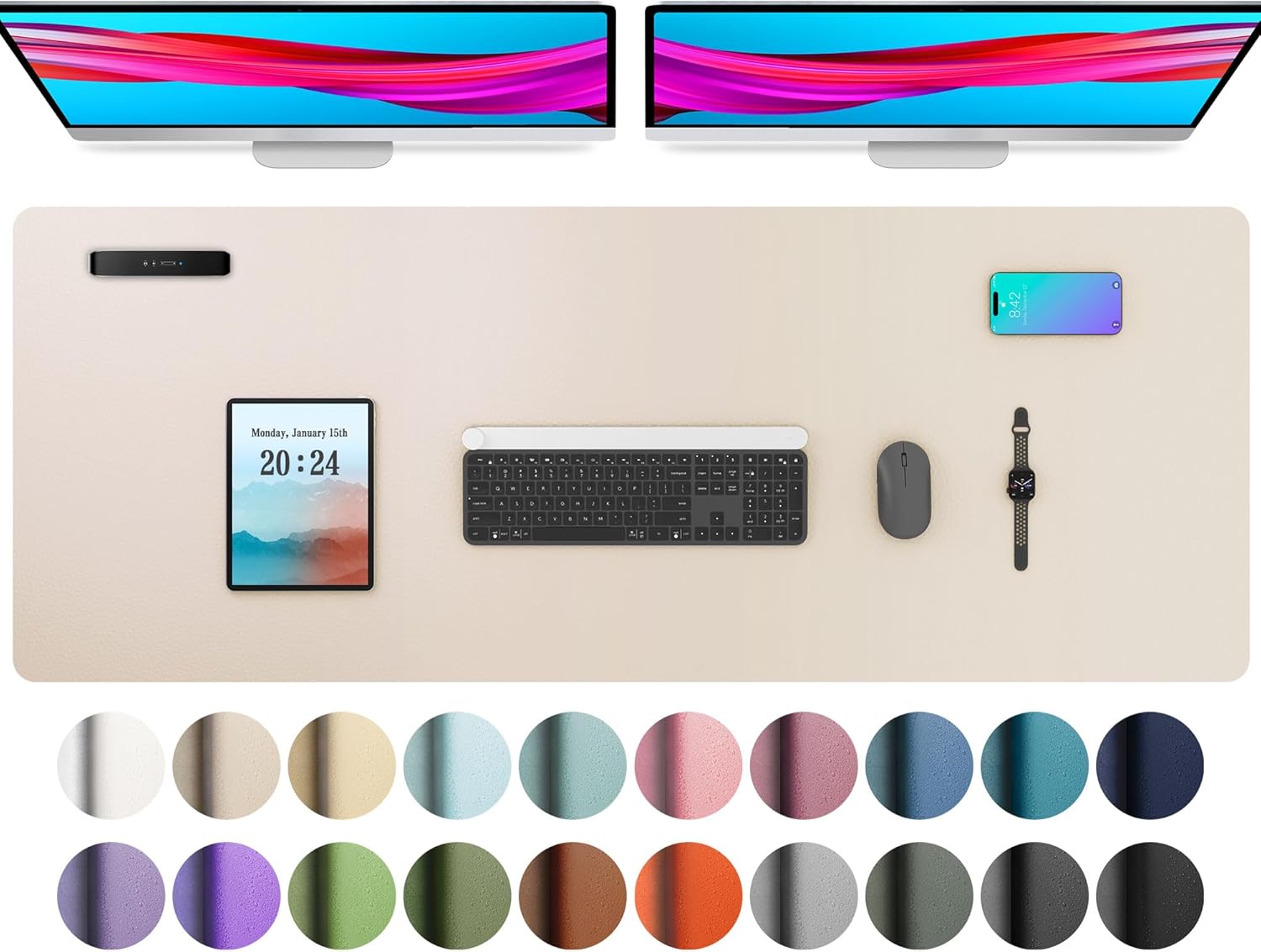Aothia Large PU Leather Desk Pad Protector – Non-Slip Mouse Pad & Writing Mat for Office/Home, Waterproof, Easy to Clean(48" x 17", Eggshell)