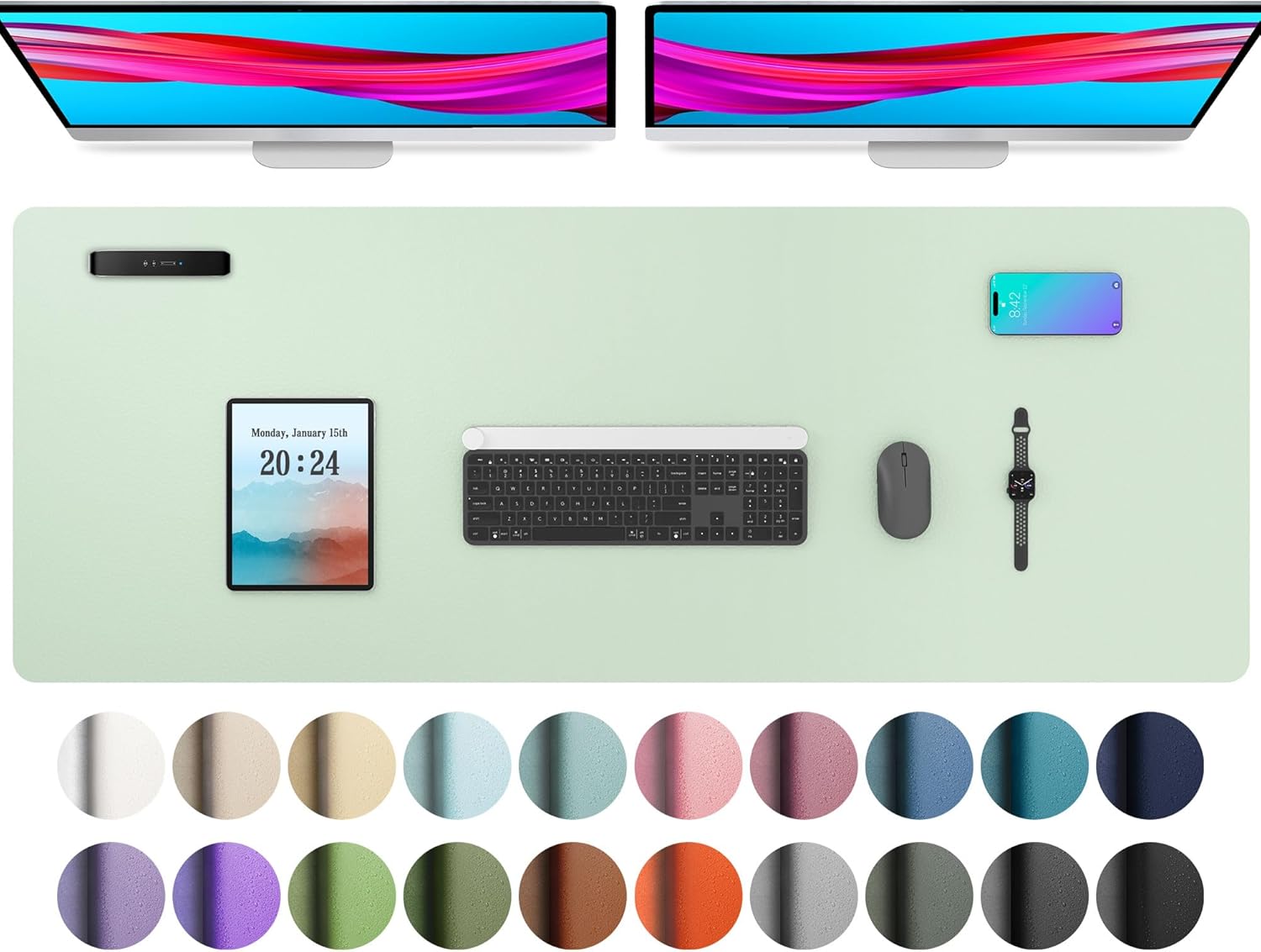 Aothia Large PU Leather Desk Pad Protector - Non-Slip Mouse Pad & Writing Mat for Office/Home, Waterproof, Easy to Clean (48" x 17",Aqua)