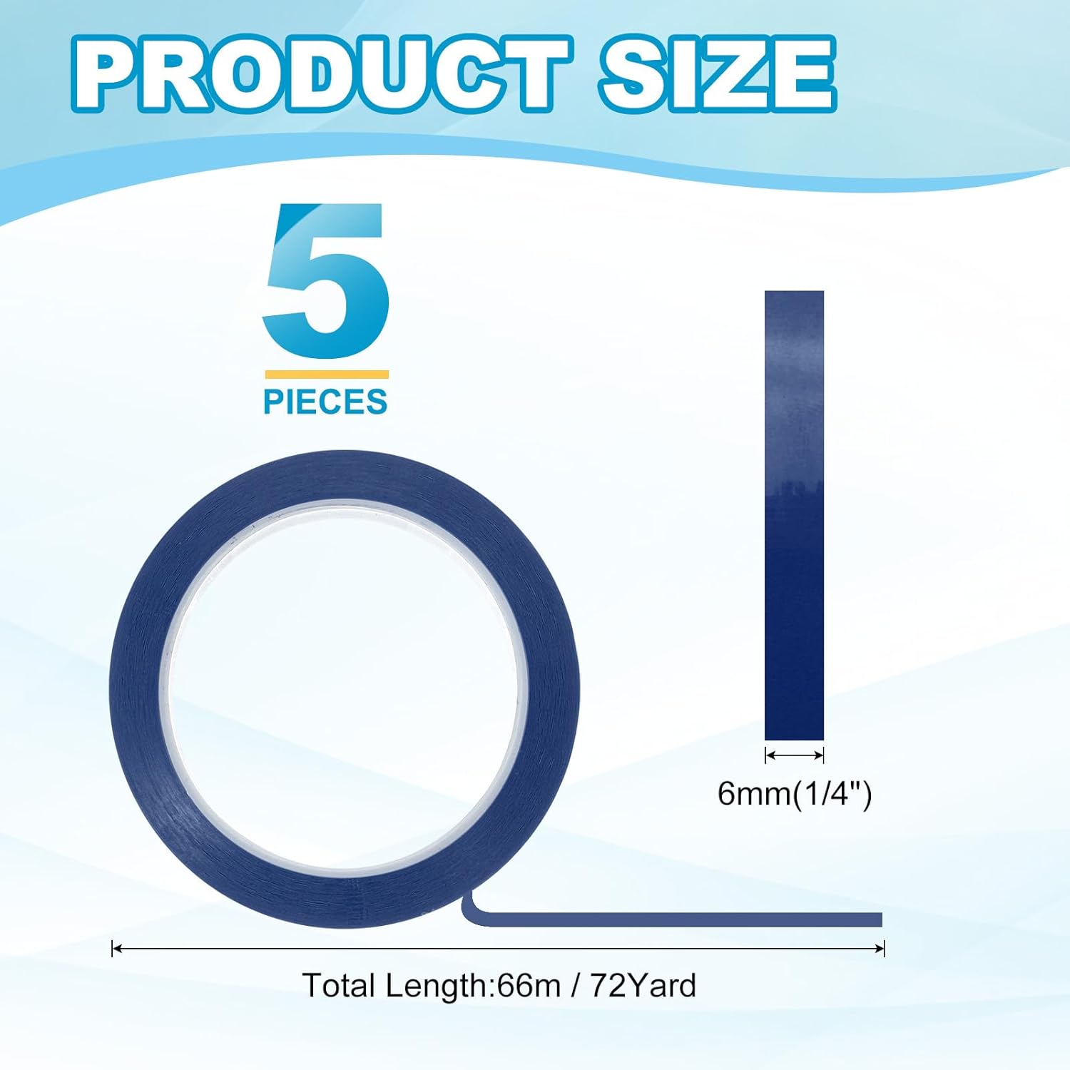 - This pinstripe tape provide here is in the size of: Width: 6mm(1/4"), Length: 66m(72 Yard); In the package of: 5 x Chart Line Tape