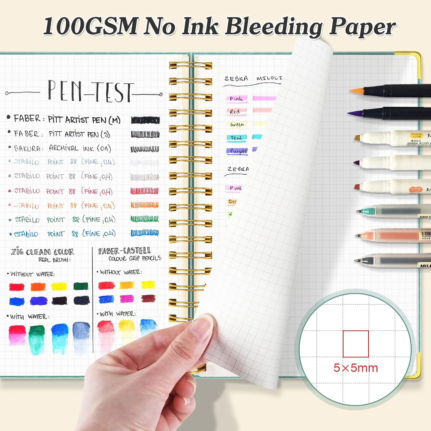 - 【100GSM Thick Grid Paper】The engineering journal notebook features 100gsm thick grid paper that's compatible with various pen types, including ballpoint, gel, fountain,marker and fine line pens, as well as glitter pens.The Ivory color dotted paper has 5mm x 5mm dot grid double-sided sheets that provide a comfortable writing experience, while protecting your eyes.