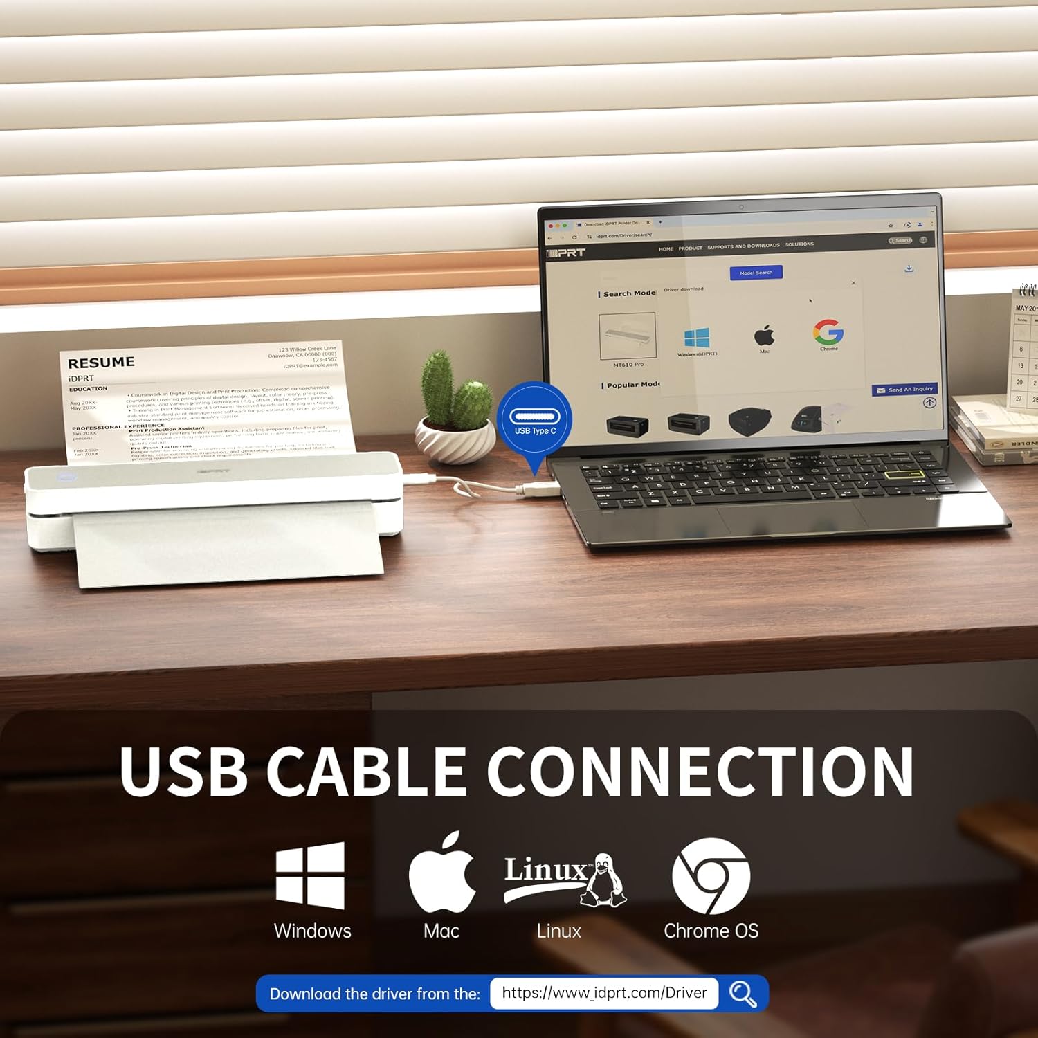 iDPRT Portable Thermal Printer,203DPI Wireless Bluetooth Small Printers for Travel,Office,Vehicles,Support 8.5" x 11" US Letter&A4 A5 Size, Compatible with Smartphone & Laptop