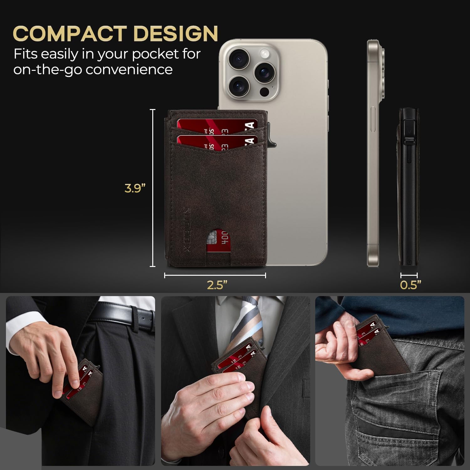 - SLIM WALLET FOR MEN with Ultra Thin & Lightweight Design: At just 0.5" thick and 2.6oz, this minimalist tactical wallet slips seamlessly into any pocket. Dimensions: 3.9"x2.5" – perfect for discrete everyday carry