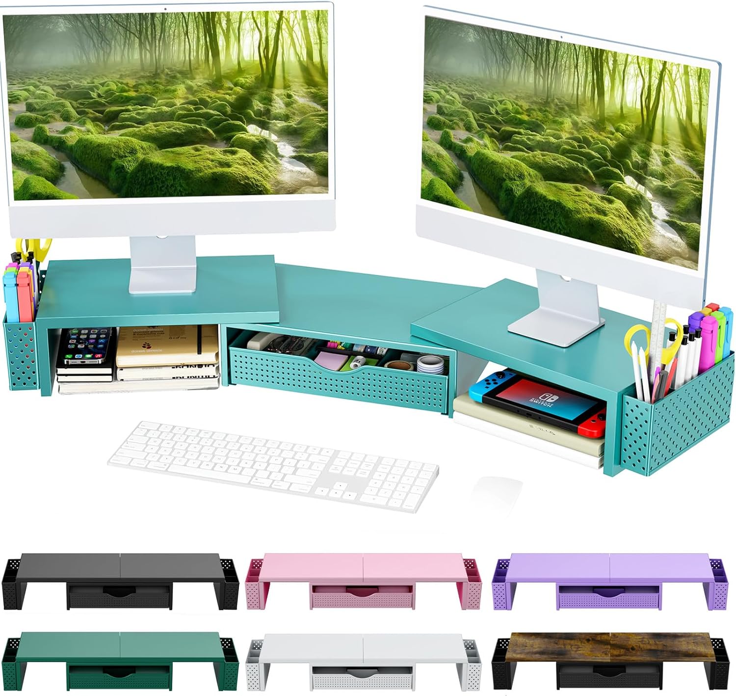 - Dual-screen office efficiency improvement: This desktop organizer is equipped with a dual-display stand, which can place two monitors at the same time, effectively expanding the workspace. It also has adjustable length (27.6-40.6 inches) and angle to provide you with a better viewing experience.