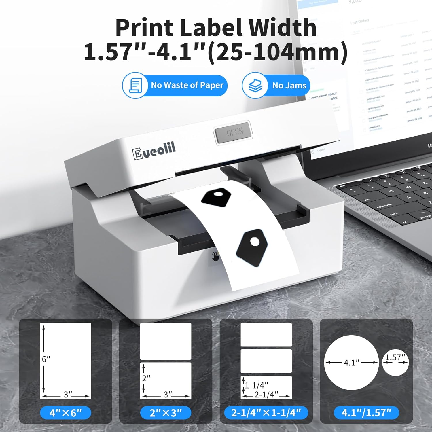 - Widely used: shipping label printer The printer supports label printing of various models, such as fanfold Label, Roller Label(Roller labels require additional purchase of roller label holders),support Labels with width ranges from 1.18" to 4.1", Typical label sizes are 2 ×1'', 3 ×1'', 3 ×2'', 4 ×6'' thermal Labels,These label sizes are also widely used on major platforms, such as: USPS, UPS, eBay, Esty, Shopify, Amazon, PayPal, Poshmark, etc.
