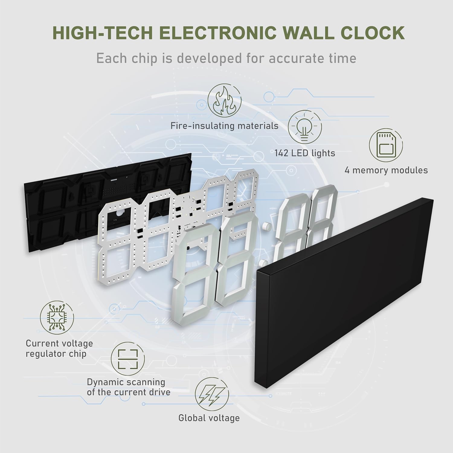- 【Frameless and Ultra-thin Design】Unlike the other digital wall clock which has a thick border in the market, our brand large number digital clock using the shell which is redesign by us. The use of ABS plastic ensures that the wall clock is fire-retardant, lightweight and strong. There are two hanging holes and standback support for mounted the clock on the wall or place on the table.